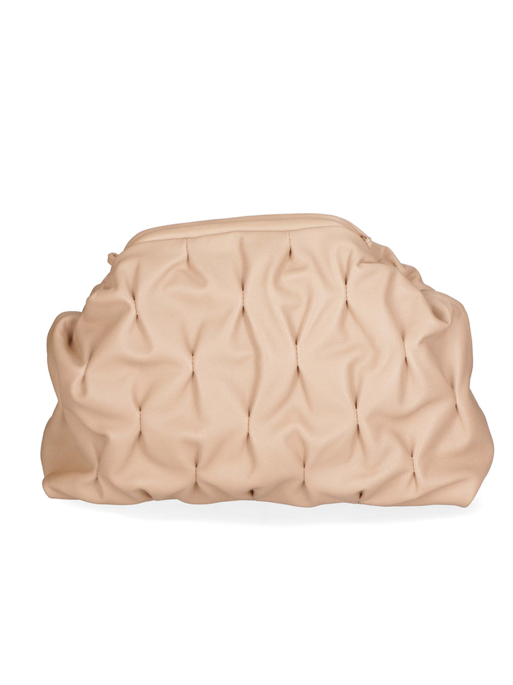 Peppen Sie Ihr Accessoire-Angebot mit dieser schicken Clutch auf, die über ein einzigartiges, voluminöses und gestepptes Design verfügt. Der plüschige, gepolsterte Look wird durch genähte Einkerbungen für einen luxuriösen Tufting-Stil betont. Mit einer geschwungenen Oberkante und einer flachen Basis steht diese Handtasche stabil und elegant auf jedem Untergrund.