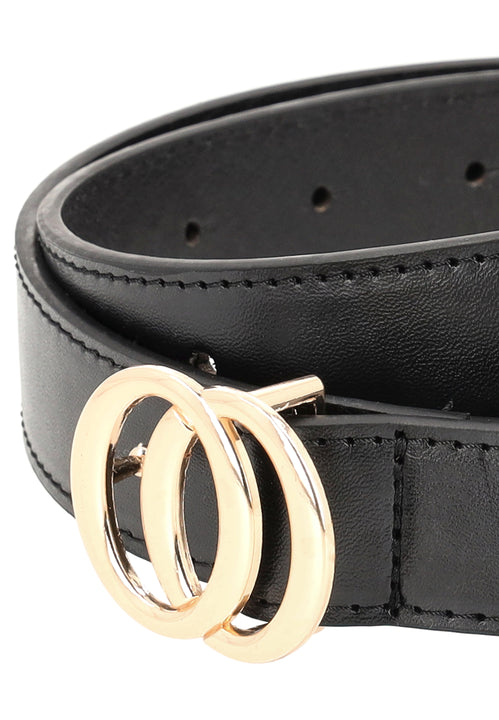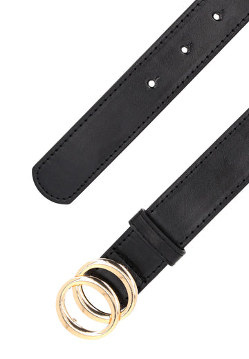 Betonen Sie Ihren Stil mit diesem Doppelschnallengürtel, der sowohl auf Eleganz als auch auf Funktionalität ausgelegt ist. Das verstellbare Design verfügt über dezente Löcher und eine runde, dekorative Doppelschnalle, die ins Auge fällt. Es besteht aus Öko-Leder und eignet sich ideal zum Durchfädeln durch Gürtelschlaufen an jedem Outfit.