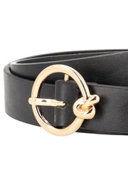 Werten Sie Ihren Stil mit diesem klassischen Gürtel mit runder Schnalle auf, der Eleganz ausstrahlt. Die dekorative Schnalle wertet das schlichte Design auf und macht es zu einem herausragenden Accessoire. Ausgestattet mit Gürtelschlaufen für müheloses Tragen, ist es verstellbar, um eine perfekte Passform zu gewährleisten. Dieses zeitlose Stück aus Öko-Leder verleiht jedem Outfit Raffinesse.