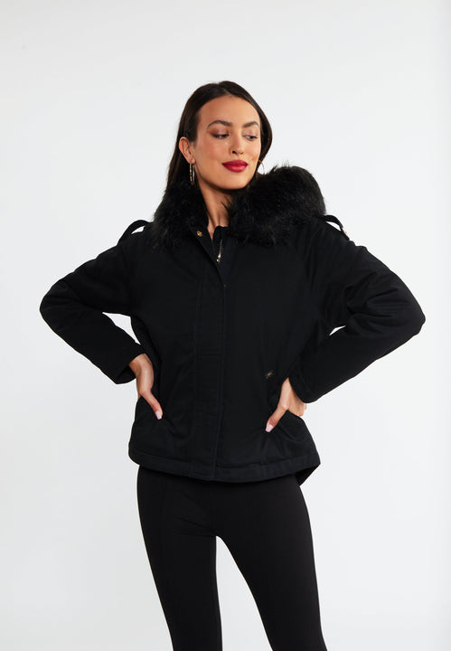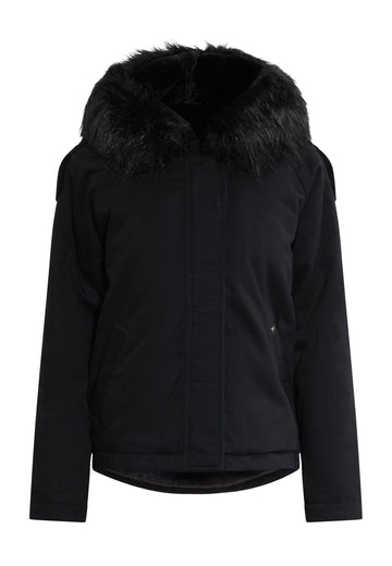 Diese extravagante Winterjacke von faina beeindruckt mit ihrer schlanken Linie. In einem modisch eleganten Stil hat sie einen figurbetonten Schnitt und ist daher genau das Richtige, wenn Sie Ihre Figur betonen möchten. Viele liebevolle Details wie goldfarbene Akzente und der abnehmbare Kunstpelzkragen an der Kapuze ergänzen das besondere Design für echten Modegenuss. Zwei seitliche Taschen mit Druckknöpfen bieten praktischen Platz für Ihre Sachen. Dank der leichten Polsterung ist die Jacke angenehm warm zu tragen und gleichzeitig schön leicht.