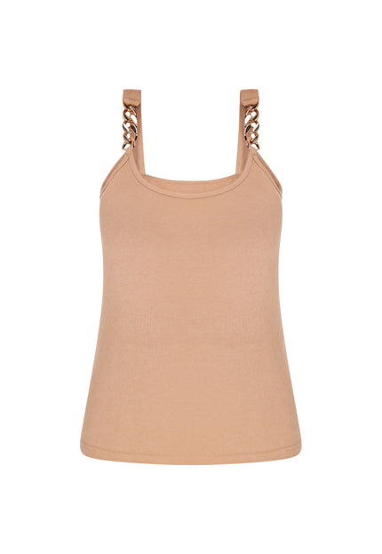 Verleihen Sie Ihrer Alltagsmode mit diesem stylischen Top, das eine reguläre Passform und ein Rundhalsausschnitt-Design bietet, ein Upgrade. Die Kettenriemen setzen einen trendigen Akzent, während der gerippte Strickstoff für Komfort sorgt. Dieses schlichte, aber schicke Top ist perfekt für legere Ausflüge und ermöglicht es Ihnen, mühelos modische Looks aus unserer exklusiven Fashion Look Kollektion zu kreieren.