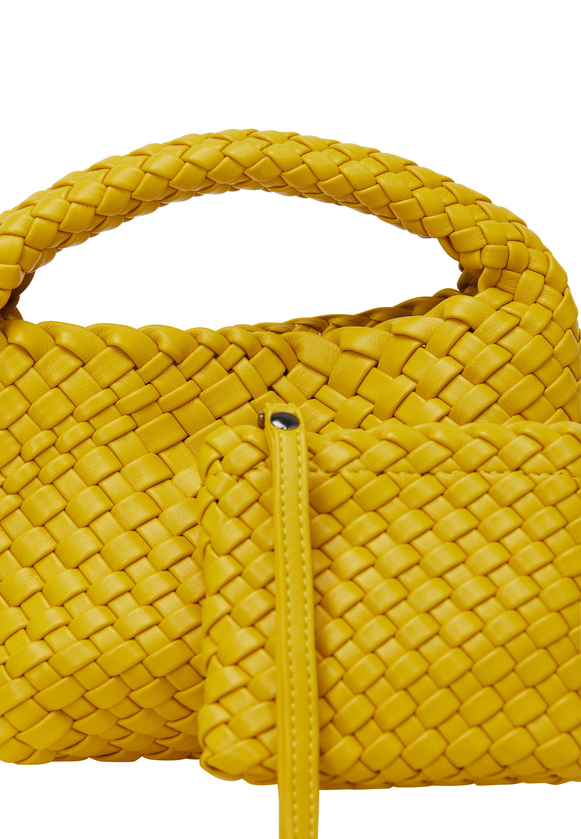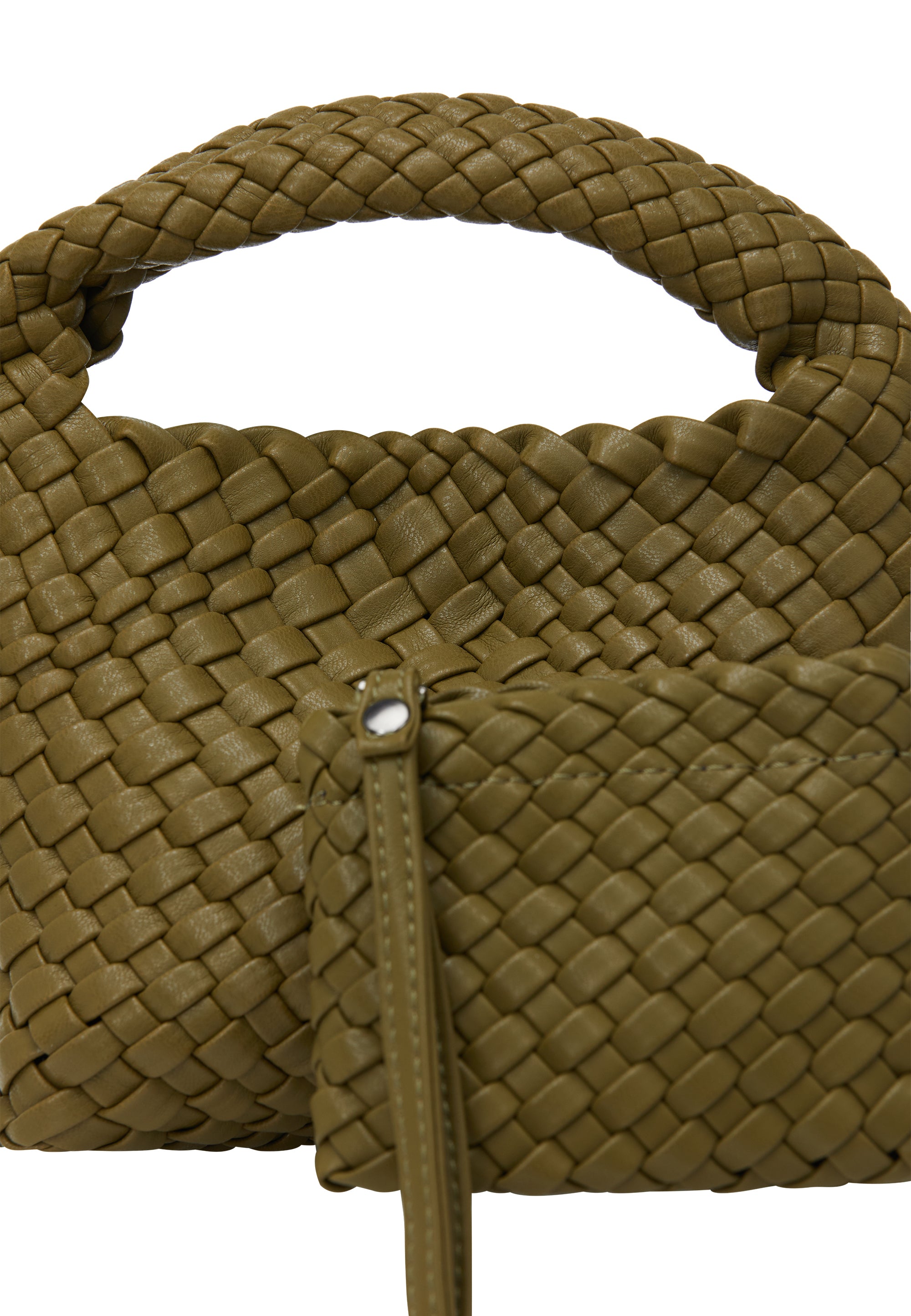 Dieses 2-in-1 Tragetaschen-Set verfügt über ein einzigartiges Flechtmuster, das heraussticht. Für legere Anlässe entworfen, enthält es eine zusätzliche Kette für Vielseitigkeit und Komfort. Der Knopfverschluss sorgt für Sicherheit und bewahrt gleichzeitig ein elegantes Aussehen. Ohne ein Detail zu übersehen, vereint diese Handtasche Stil und Funktionalität in einem schicken Paket, das perfekt für jeden Ausflug ist.