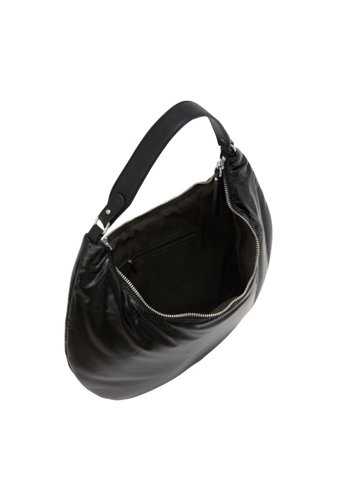 Verleihen Sie Ihrem Abendlook mit dieser mondförmigen Schultertasche, die sowohl für Stil als auch Funktionalität entworfen wurde, das gewisse Etwas. Das weiche, gepolsterte Äußere verfügt über einen einzelnen, geschwungenen Schulterriemen für einfaches Tragen. Mit einem sicheren Reißverschluss und einer Reißverschlusstasche im Inneren zur Organisation ist dieses schicke Accessoire in einem einfarbigen Muster perfekt für jeden Anlass.