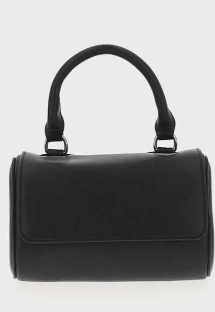 Erhöhen Sie Ihren Stil mit dieser strukturierten Handtasche, die eine elegante zylindrische Silhouette und einen abgerundeten oberen Griff für einfaches Tragen bietet. Die glatte Außenseite zeigt ein einfarbiges Muster, ergänzt durch elegante Nähte. Ein sicherer Klappenverschluss mit Metallakzenten verleiht einen schicken Reiz. Ideal für legere Anlässe, enthält sie einen zusätzlichen Riemen und einen Druckknopfverschluss für Bequemlichkeit.