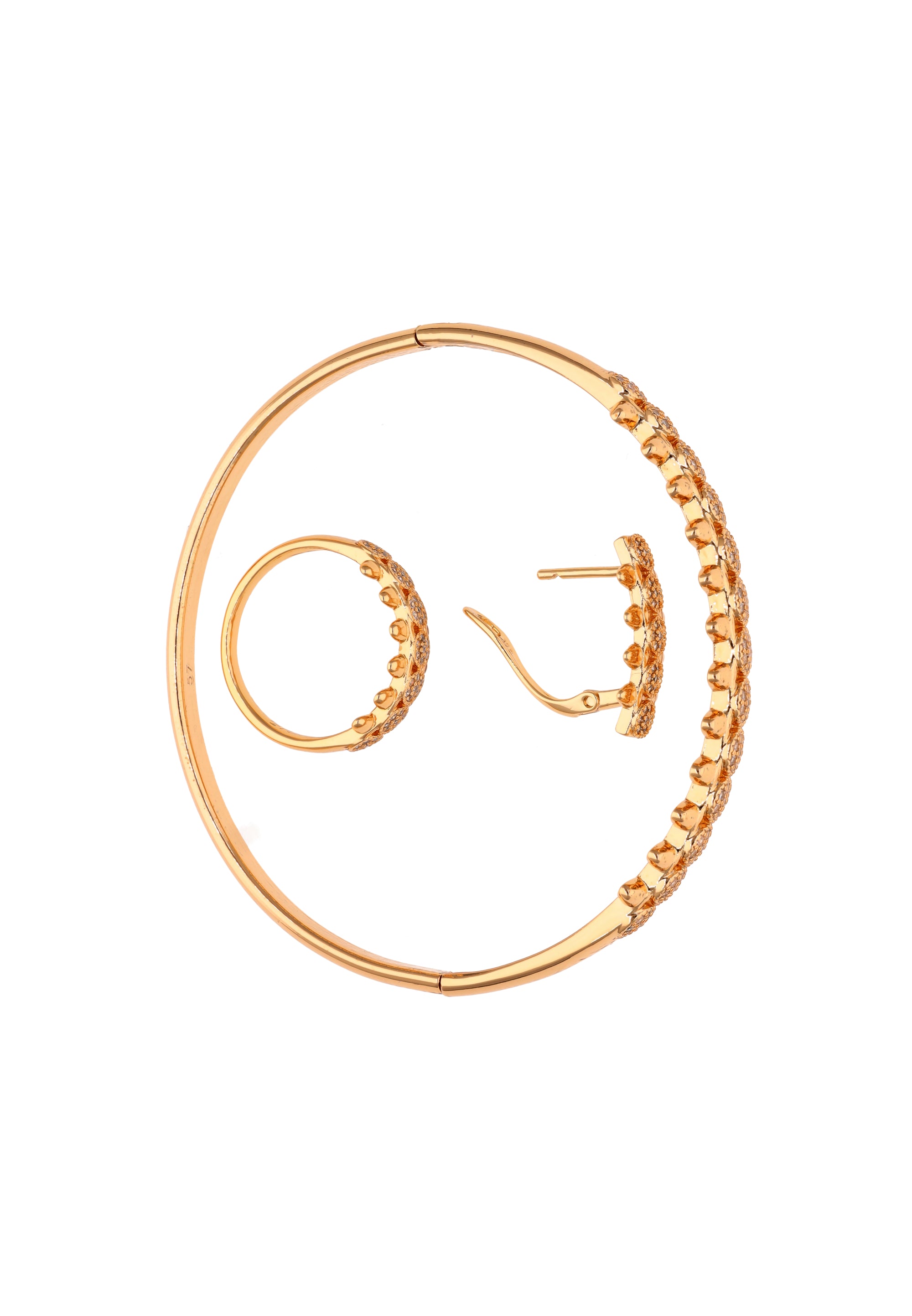 Fügen Sie Ihrem Look mit diesem kompletten Schmuckset aus unserer Schmuckkollektion einen strahlenden Akzent hinzu, das Armbänder mit Klapp- und Karabinerverschlüssen, Ohrringe mit Steckverschluss und einen passenden Ring umfasst. Jedes Stück ist aus hochwertigem Kupfer gefertigt und zeigt ein glänzendes Muster, das mit funkelnden Strasssteinen für ein elegantes, schimmerndes Finish verziert ist. Zeitlos und raffiniert, verleiht dieses Set mühelos sowohl Alltagsoutfits als auch besonderen Anlass-Outfits das gewisse Etwas.