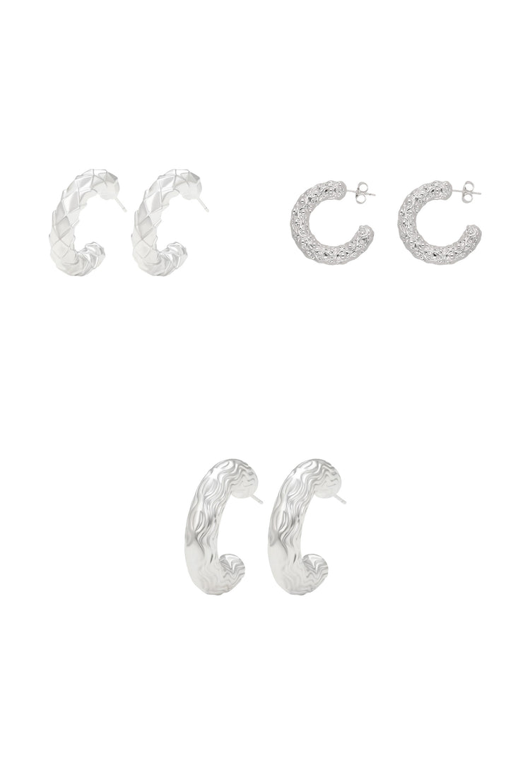Erhöhen Sie Ihren Stil mit diesem Set aus drei Kupfer-Creolen aus der Schmuckkollektion. Hergestellt aus hochwertigem Kupfer, verfügt jedes Paar über ein strukturiertes Muster, das Tiefe und raffinierte Eleganz zum klassischen Creolendesign hinzufügt. Sicher befestigt mit einem Schmetterlingsverschluss, bietet dieses elegante Set vielseitige Styling-Optionen und ist somit perfekt für den Alltag und besondere Anlässe. Fügen Sie jedem Outfit mit diesen wunderschön gestalteten Creolen einen Hauch zeitloser Anziehungskraft und subtilen Glanz hinzu.