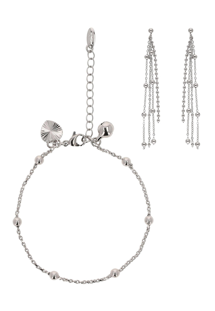 Ein stilvolles Schmuckset bestehend aus hängenden Ohrringen und einem Armband, entworfen für Frauen, die Eleganz und vielseitigen Stil schätzen. Hergestellt aus einer Materialmischung, kombiniert es eine Kette, Perlen und charmante Anhänger und schafft eine subtile und harmonische Komposition. Die Ohrringe verfügen über einen Verschluss für angenehmes Tragen, während das Armband einen Karabinerverschluss für einen sicheren Sitz hat. Dank seines schlichten Designs und eleganten Charakters ist dieses Set perfekt für besondere Anlässe.