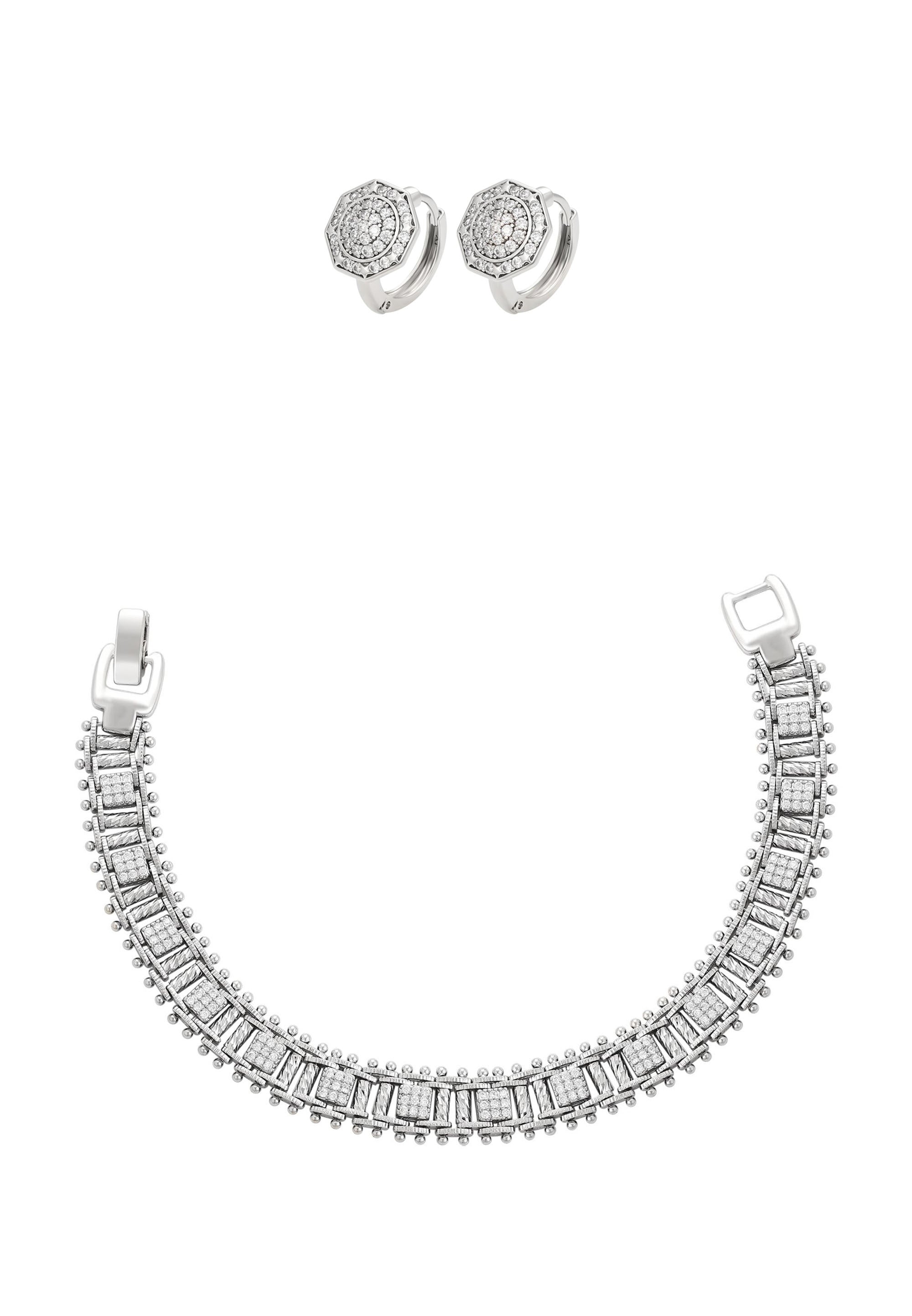 Dieses stilvolle Schmuckset, bestehend aus Creolen und einem Gliederarmband, vereint Eleganz, Glanz und Zeitlosigkeit. Gefertigt aus hochwertigem Kupfer und verziert mit funkelnden Zirkonia-Steinen, ist dieses strukturierte, schimmernde Design auffällig und verleiht einen Hauch von Stil. Die Ohrringe verfügen über einen Klappverschluss für Komfort und Sicherheit, während das Armband einen Klappverschluss für einen sicheren und eleganten Sitz besitzt. Dieses schimmernde Set ist perfekt für besondere Anlässe und verleiht jedem Outfit einen Hauch von subtiler Luxus und Klasse.