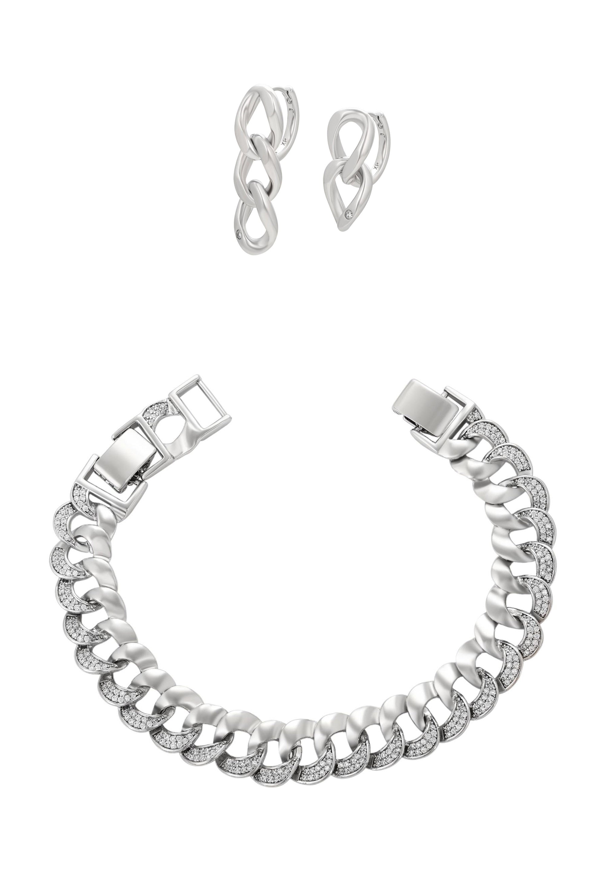 Dieses stilvolle Schmuckset, bestehend aus Ohrringen und einem Gliederarmband, verbindet Eleganz, zeitloses Design und dezenten Glanz. Hergestellt aus hochwertigem Kupfer, ist es mit funkelnden Zirkonia besetzt und verfügt über ein schimmerndes Design. Die Ohrringe haben einen Klappverschluss für Komfort und Sicherheit, während das Armband einen Steckverschluss für einen stabilen und eleganten Sitz besitzt. Das Panzerarmband verleiht einen modernen und klassischen Touch. Dieses schimmernde Set ist perfekt für Frauen, die klassischen Stil, Luxus und raffinierte Eleganz schätzen.