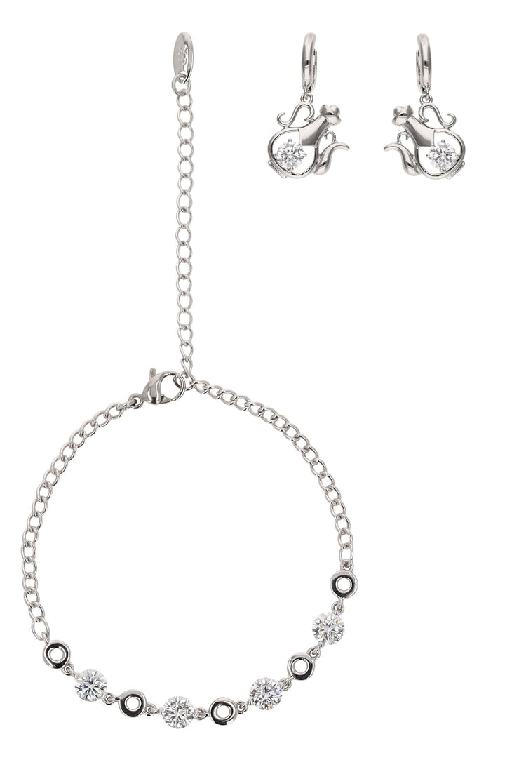 Dieses Schmuckset, bestehend aus Creolen und einem Armband, vereint Eleganz, Glanz und Stil. Hergestellt aus hochwertigem Kupfer und verziert mit funkelnden Kristallen und einem Kettenabschluss, zeigt es ein kunstvolles und glänzendes Design, das jedem Outfit eine einzigartige Note verleiht. Die Ohrringe verfügen über einen Klappverschluss für Komfort und Sicherheit, während das Armband einen Karabinerverschluss für einen sicheren und eleganten Sitz hat. Dieses schimmernde Set ist perfekt für besondere Anlässe und verleiht jedem Outfit einen Hauch von subtiler Luxus und Klasse.
