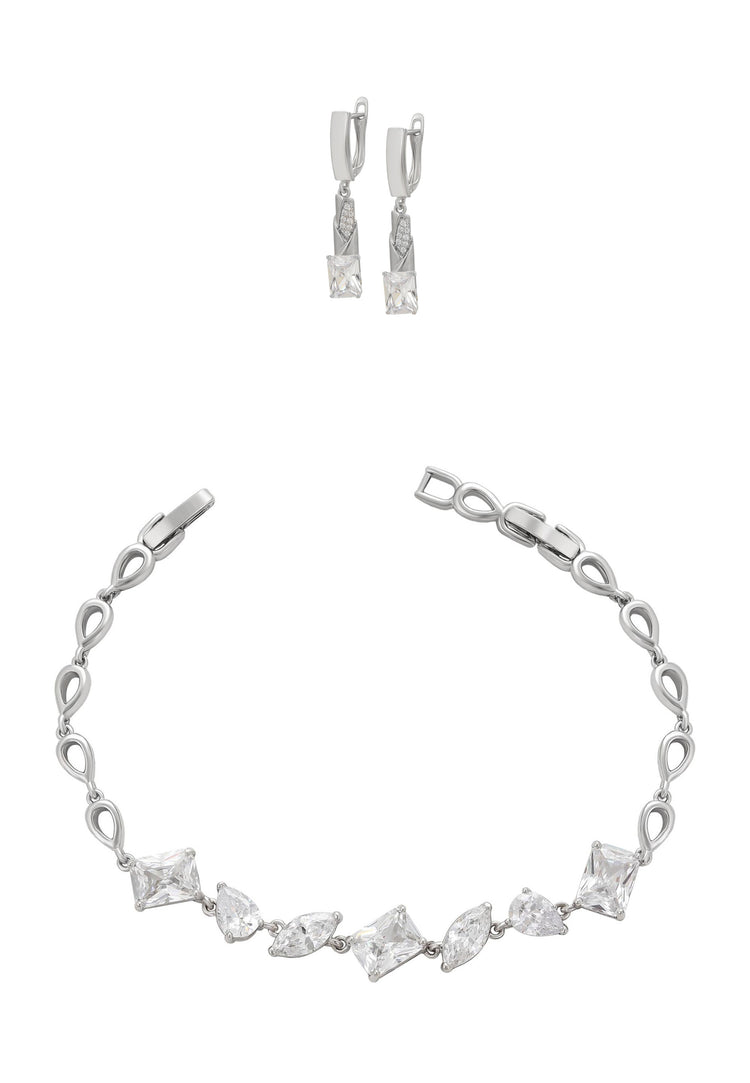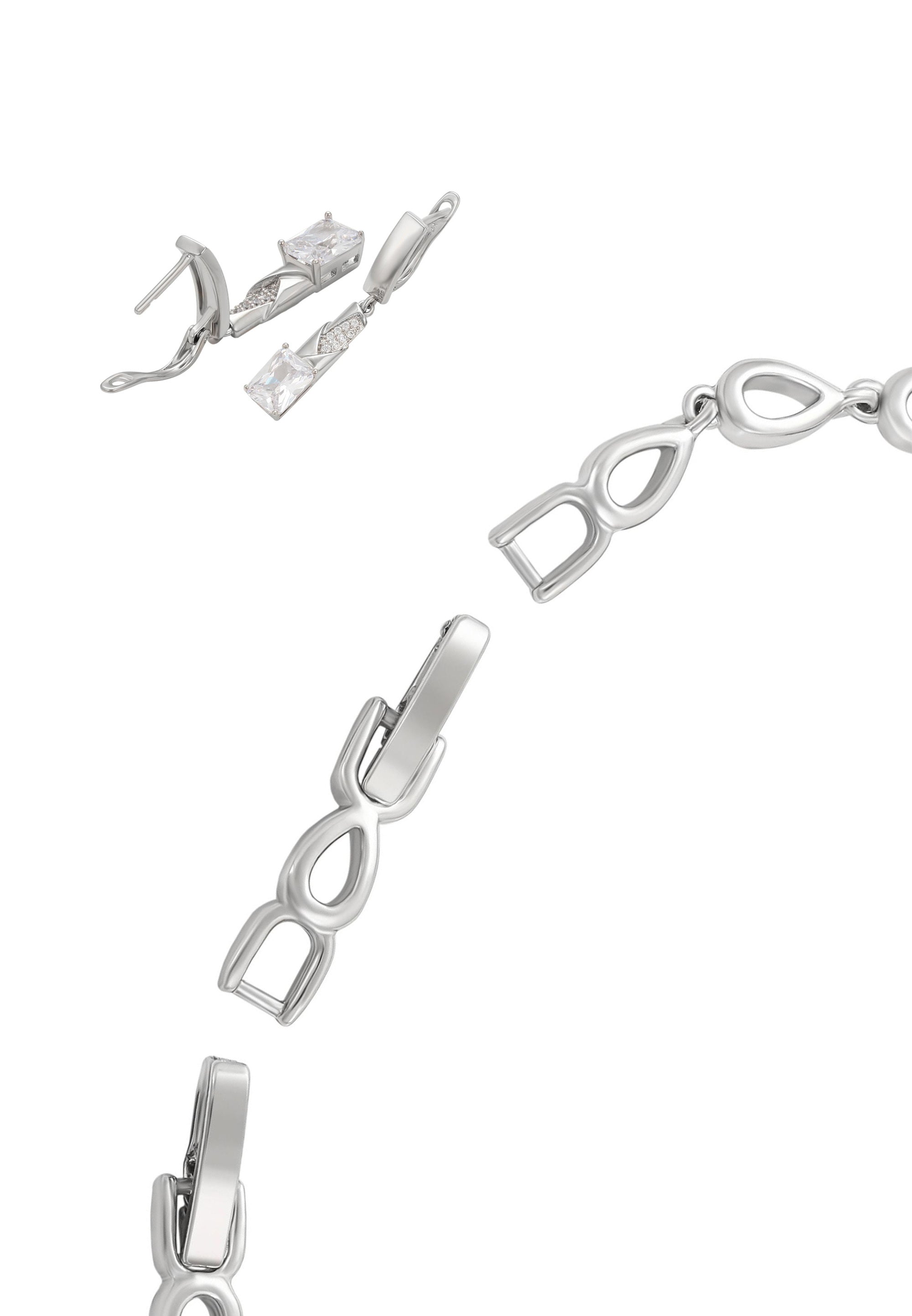 Dieses luxuriöse Schmuckset, bestehend aus hängenden Ohrringen und einem Armband, verbindet Eleganz, Brillanz und zeitlosen Stil. Hergestellt aus hochwertigem Kupfer, ist es mit Kristallen verziert und verfügt über ein schimmerndes Design. Die Ohrringe haben einen Steckverschluss für Komfort und Sicherheit, während das Armband einen Klappverschluss für einen sicheren und eleganten Sitz aufweist. Dieses schimmernde Set ist perfekt für besondere Anlässe und betont subtile Luxus und Raffinesse.