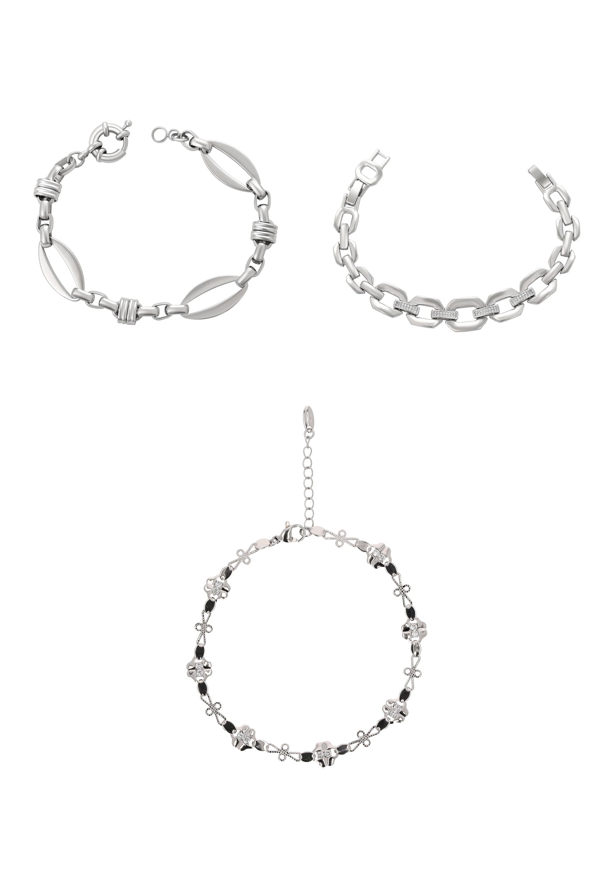 Vervollständigen Sie Ihren Look mit diesem eleganten Set schimmernder Armbänder aus unserer Schmuckkollektion. Hergestellt aus hochwertigem Kupfer mit einem schlichten Muster und verziert mit funkelnden Strasssteinen, verbindet jedes Armband filigrane Handwerkskunst mit modernem Design. Der Kettengliederstil verleiht einen Hauch von Raffinesse und Vielseitigkeit, wodurch dieses Set perfekt zum Schichten oder zum Einzeltragen geeignet ist. Entworfen, um jedes Outfit zu ergänzen, verkörpern diese strahlenden Armbänder Eleganz, Vielseitigkeit und zeitlosen Charme und sind somit eine unverzichtbare Ergänzung jeder Schmuckkollektion.