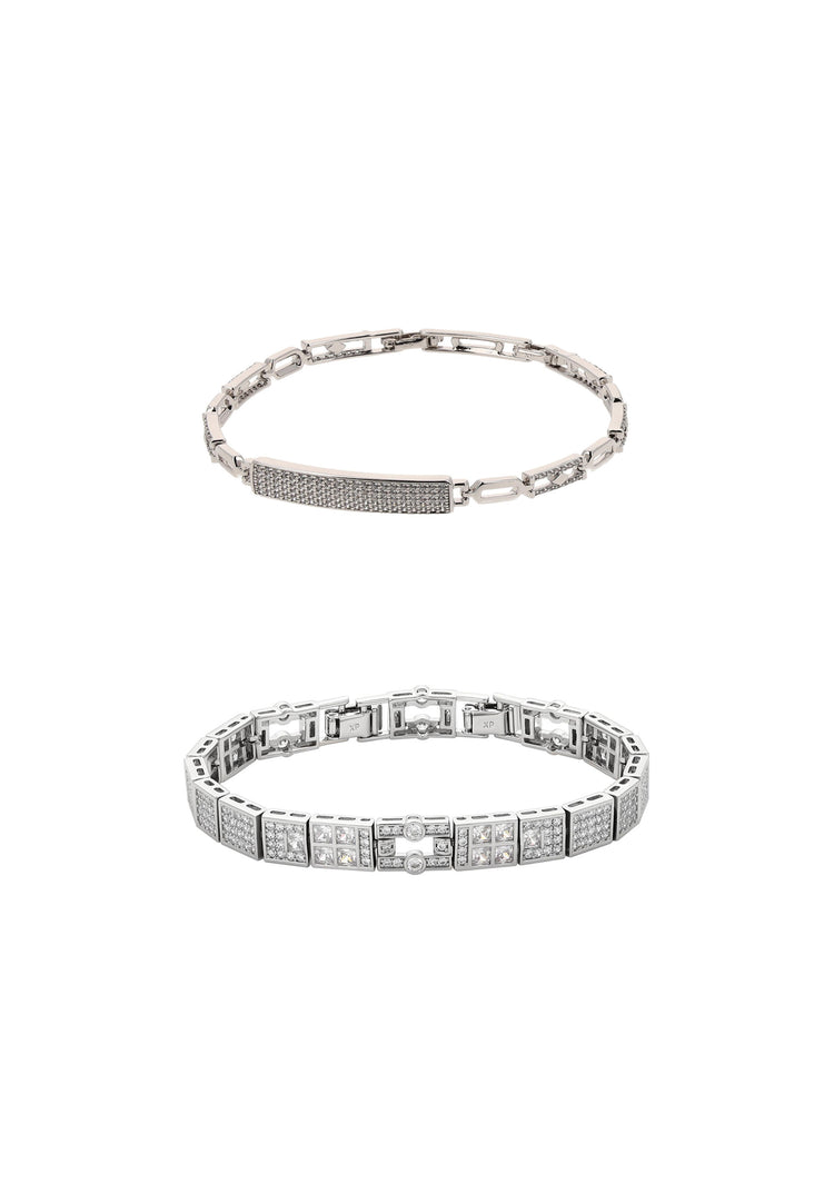 Vervollständigen Sie Ihren Look mit diesem eleganten Set schimmernder Armbänder aus unserer Schmuckkollektion. Hergestellt aus hochwertigem Kupfer mit einem schlichten Muster und verziert mit funkelnden Strasssteinen, verbindet jedes Armband filigranes Handwerk mit modernem Design. Der Gliederstil verleiht einen Hauch von Raffinesse und Vielseitigkeit, wodurch dieses Set perfekt zum Schichten oder zum Einzeltragen geeignet ist. Entworfen, um jedes Outfit zu ergänzen, verkörpern diese strahlenden Armbänder Eleganz, Vielseitigkeit und zeitlosen Charme und sind somit eine unverzichtbare Ergänzung jeder Schmuckkollektion.