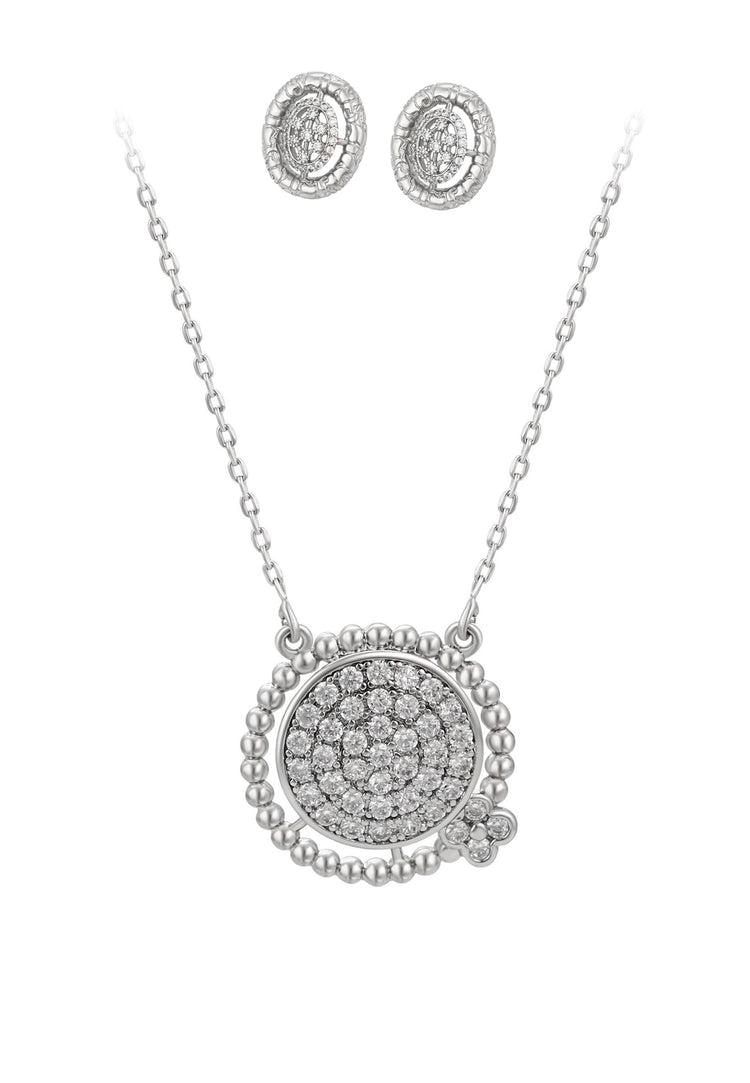 Fügen Sie mit diesem eleganten Schmuckset aus unserer Schmuckkollektion einen Hauch von Glanz hinzu. Dieses exquisite Halsketten- + Ohrring-Set besteht aus einer Kupferkette mit sicherem Karabinerverschluss und passenden Ohrsteckern mit Schmetterlingsverschlüssen, beide mit funkelnden Strasssteinen verziert. Mit einem glänzenden Muster gefertigt, verkörpert dieses Set Eleganz, Vielseitigkeit und zeitlosen Charme, was es perfekt macht, um Alltagsoutfits zu veredeln oder besonderen Anlässen Raffinesse zu verleihen. Eine strahlende und raffinierte Wahl, dieses Schmuckset bringt mühelosen Glamour und klassischen Stil in jeden Look.