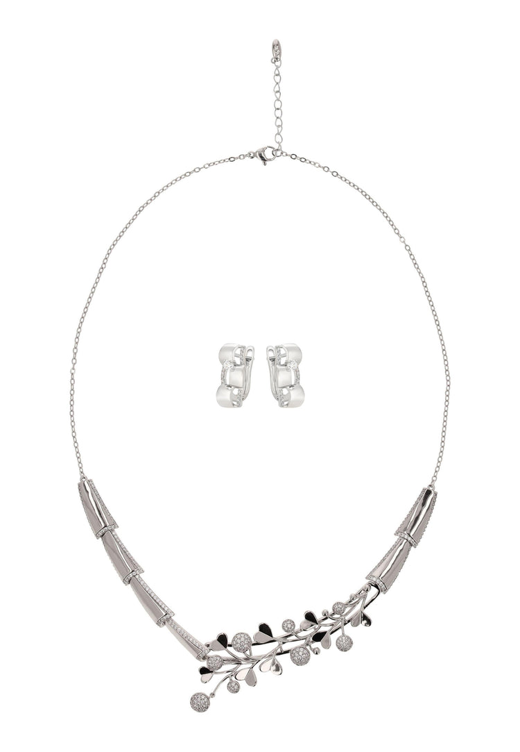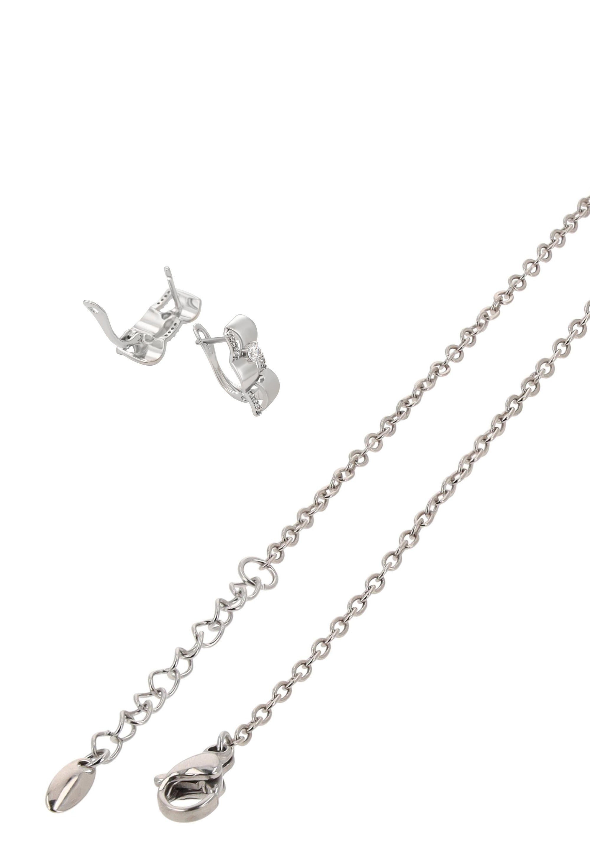 Fügen Sie mit diesem Schmuckset aus unserer Schmuckkollektion einen Hauch von feinem Glanz hinzu. Dieses Halsketten- + Ohrring-Set ist aus Edelstahl mit einem schlichten Muster gefertigt und verfügt über eine Kettenhalskette mit einem sicheren Karabinerverschluss sowie eine atemberaubende, mit Strasssteinen verzierte Verzierung. Die passenden Ohrringe sind mit Steckverschluss für einen bequemen, sicheren Sitz versehen. Elegant, vielseitig und zeitlos verleiht dieses Set mühelose Raffinesse sowohl Alltagsoutfits als auch besonderen Anlässen.
