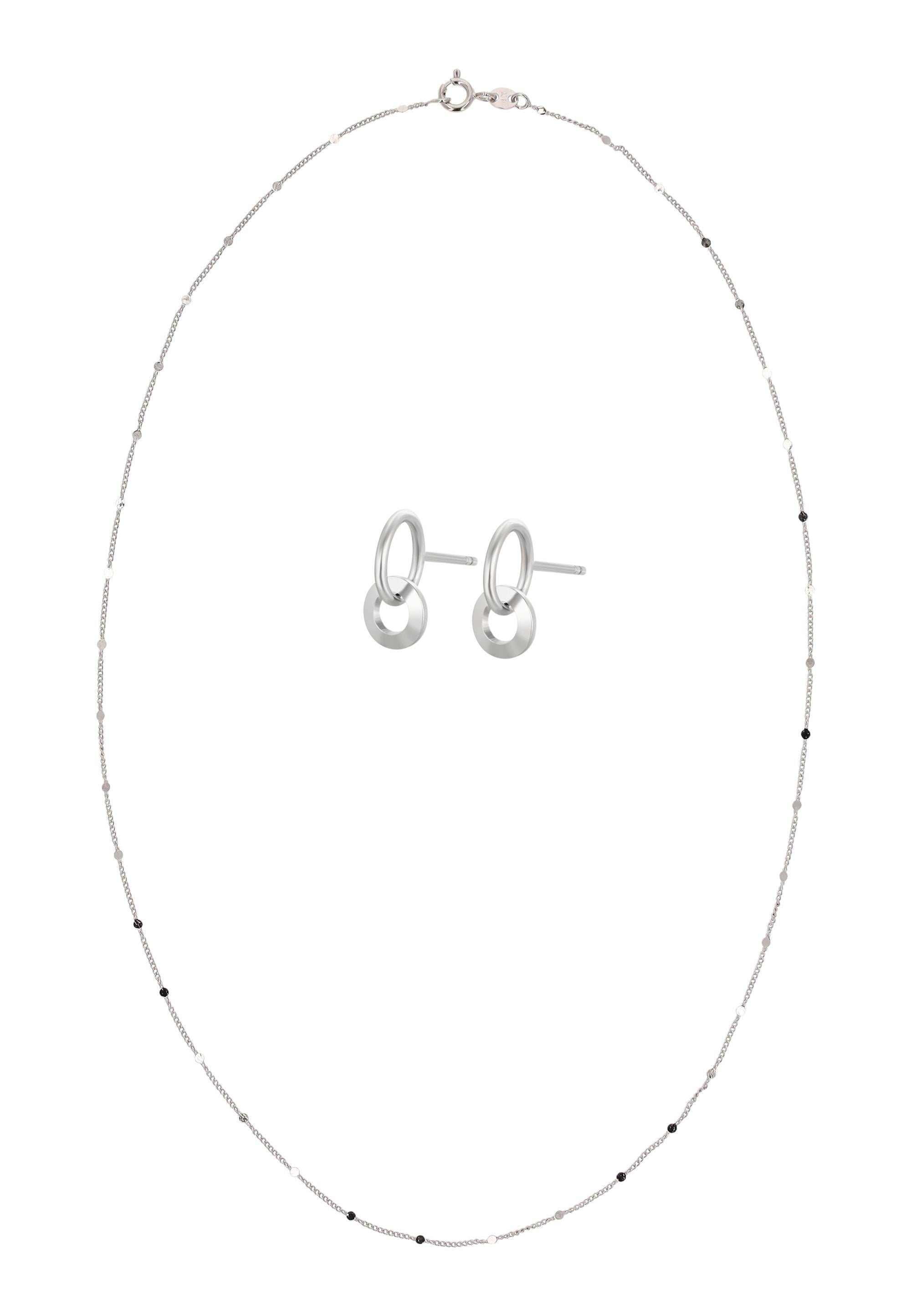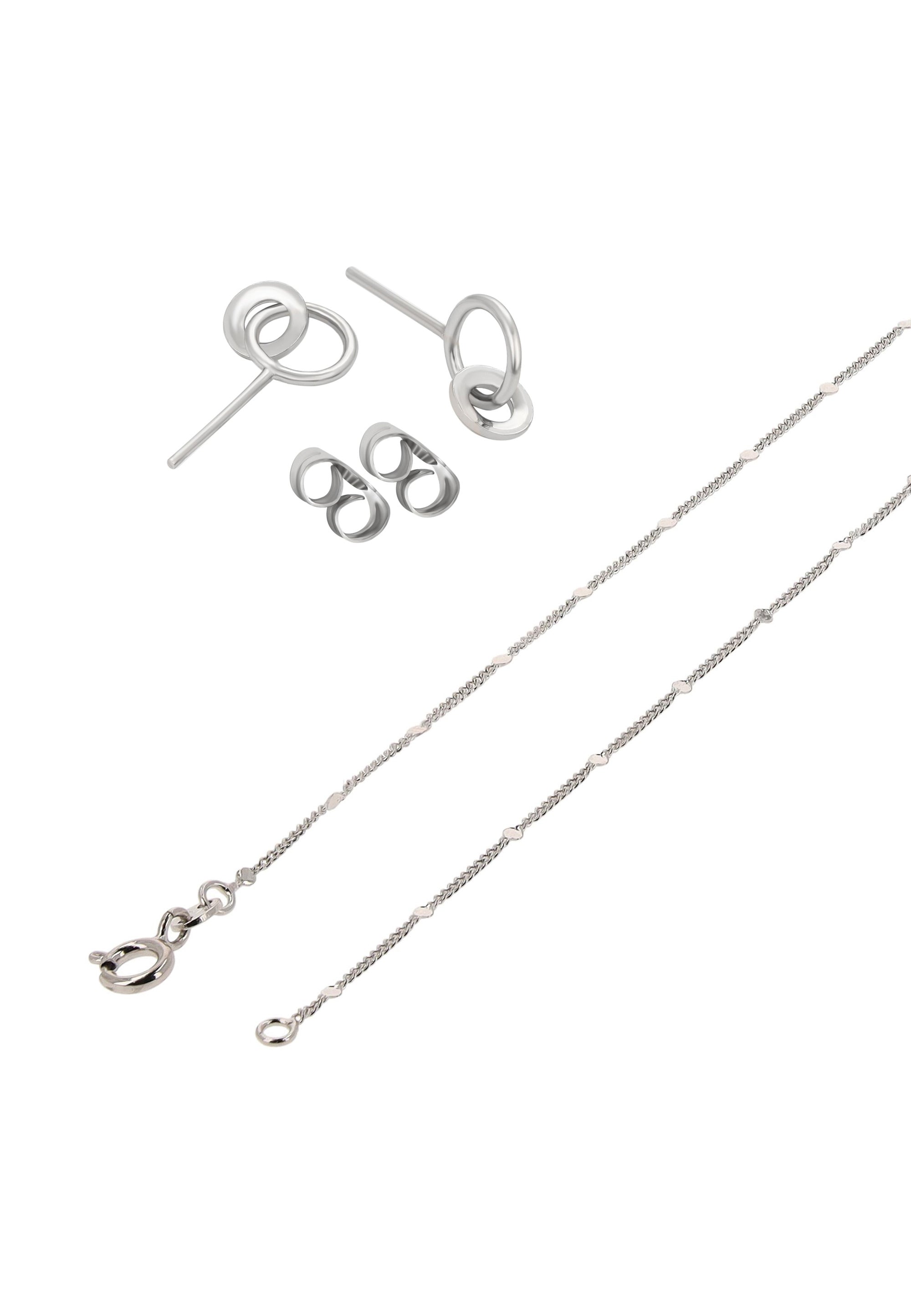 Fügen Sie mit diesem Schmuckset aus unserer Schmuckkollektion einen Hauch von Romantik und Glanz hinzu. Dieses Halsketten- + Ohrring-Set ist aus Kupfer mit einem schlichten Muster gefertigt und verfügt über eine klassische Kettenhalskette mit einem sicheren Karabinerverschluss. Die passenden Ohrringe sind mit Schmetterlingsverschlüssen gesichert. Elegant, vielseitig und zeitlos verleiht dieses Set mühelose Raffinesse und strahlenden Charme sowohl Alltagsoutfits als auch besonderen Anlässen.
