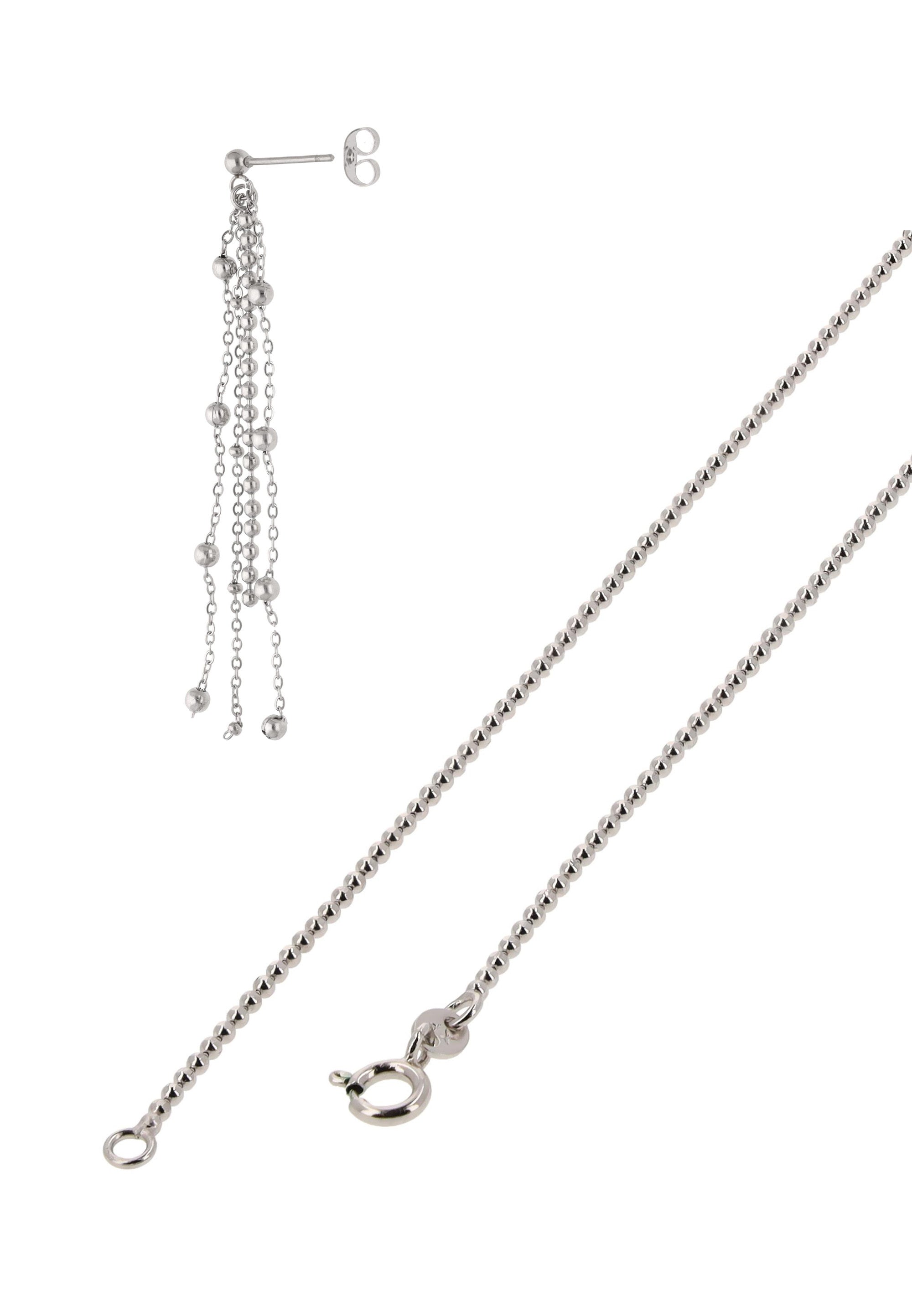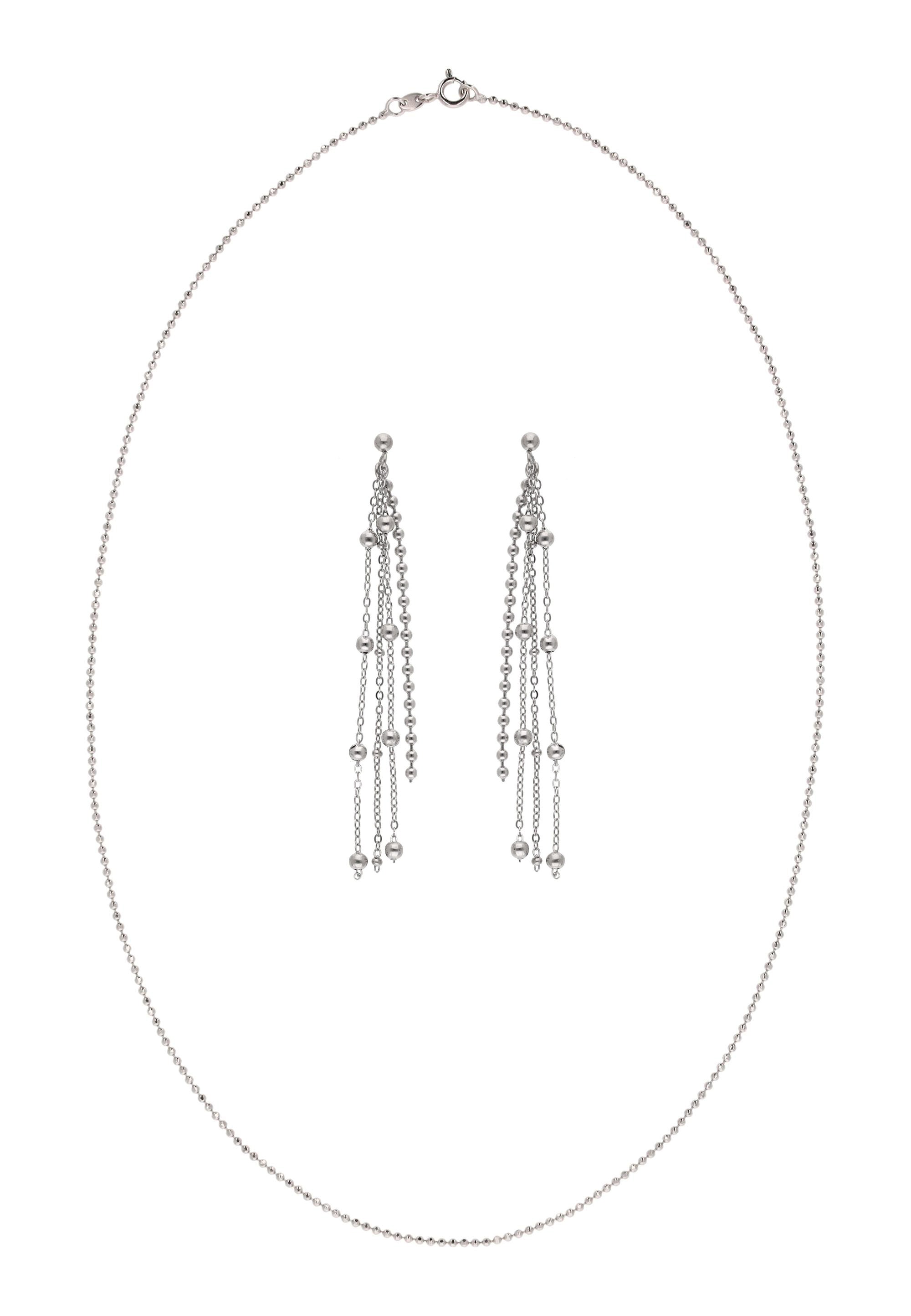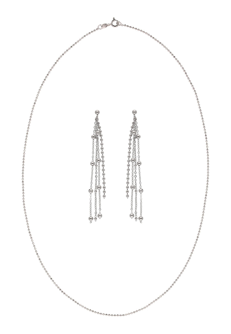 Fügen Sie verspielte Eleganz mit diesem Schmuckset aus unserer Schmuckkollektion hinzu. Dieses Halsketten- + Ohrring-Set ist aus gemischten Materialien mit einem schlichten Muster gefertigt und verfügt über eine Perlenkette mit einem sicheren Karabinerverschluss. Die passenden hängenden Ohrringe kombinieren Perlen und Ketten und sind mit Schmetterlingsverschlüssen für einen bequemen, zuverlässigen Sitz versehen. Elegant, vielseitig und zeitlos verleiht dieses Set sowohl Alltagsoutfits als auch besonderen Anlässen einen charmanten Akzent.