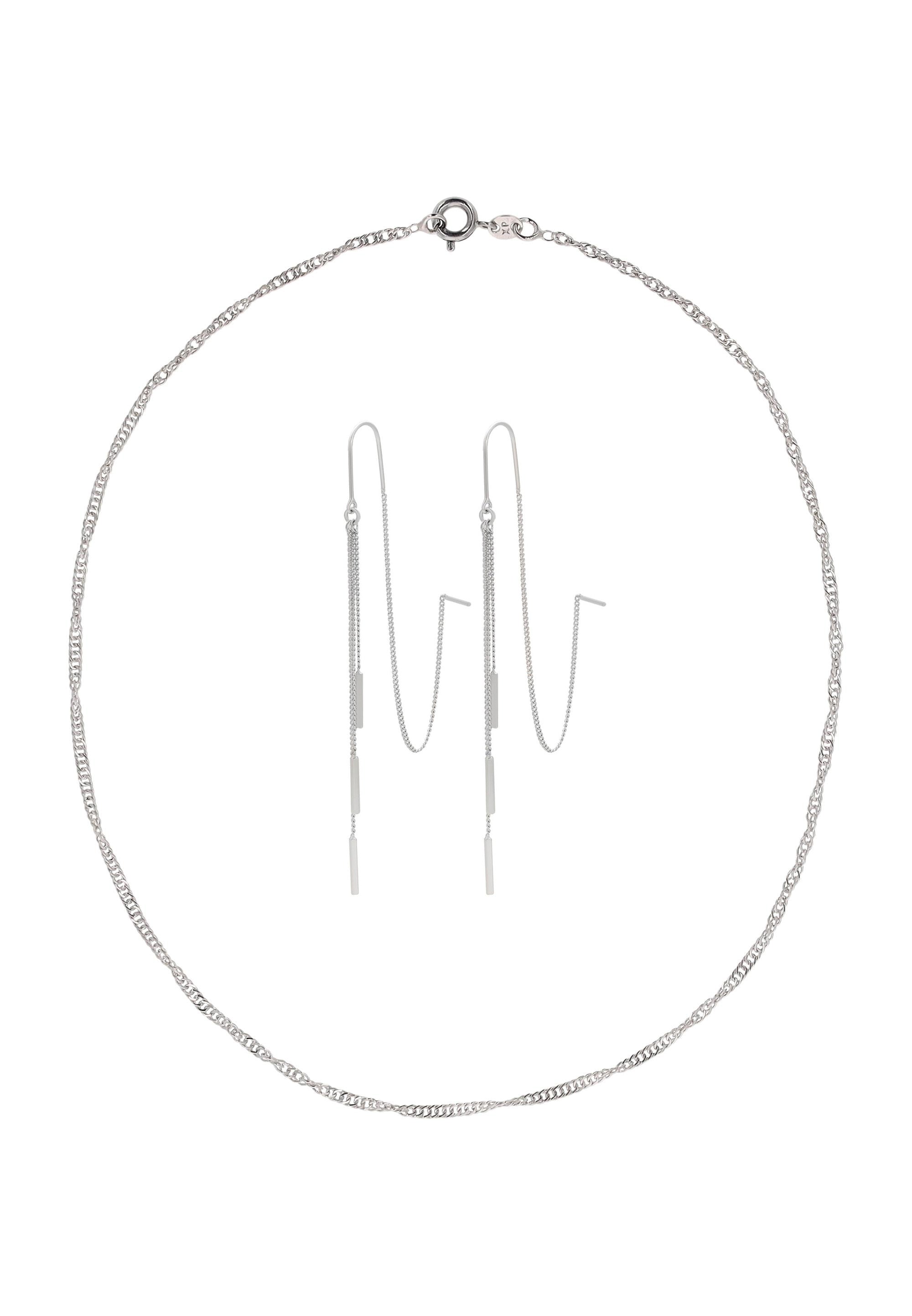 Verleihen Sie Ihrem Look mit diesem Schmuckset aus unserer Schmuckkollektion das gewisse Etwas. Dieses Halsketten- + Ohrring-Set ist aus Kupfer gefertigt und verfügt über ein schlichtes Muster, mit einer Halskette aus Seilkette und einem sicheren Karabinerverschluss. Die passenden Durchzieher-Ohrringe bieten ein modernes, vielseitiges Design für komfortables und stilvolles Tragen. Elegant, vielseitig und zeitlos verleiht dieses Set mühelose Raffinesse sowohl Alltagsoutfits als auch besonderen Anlässen.