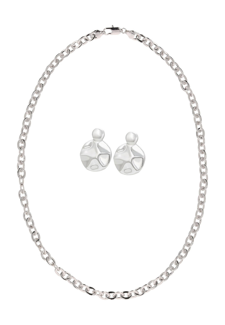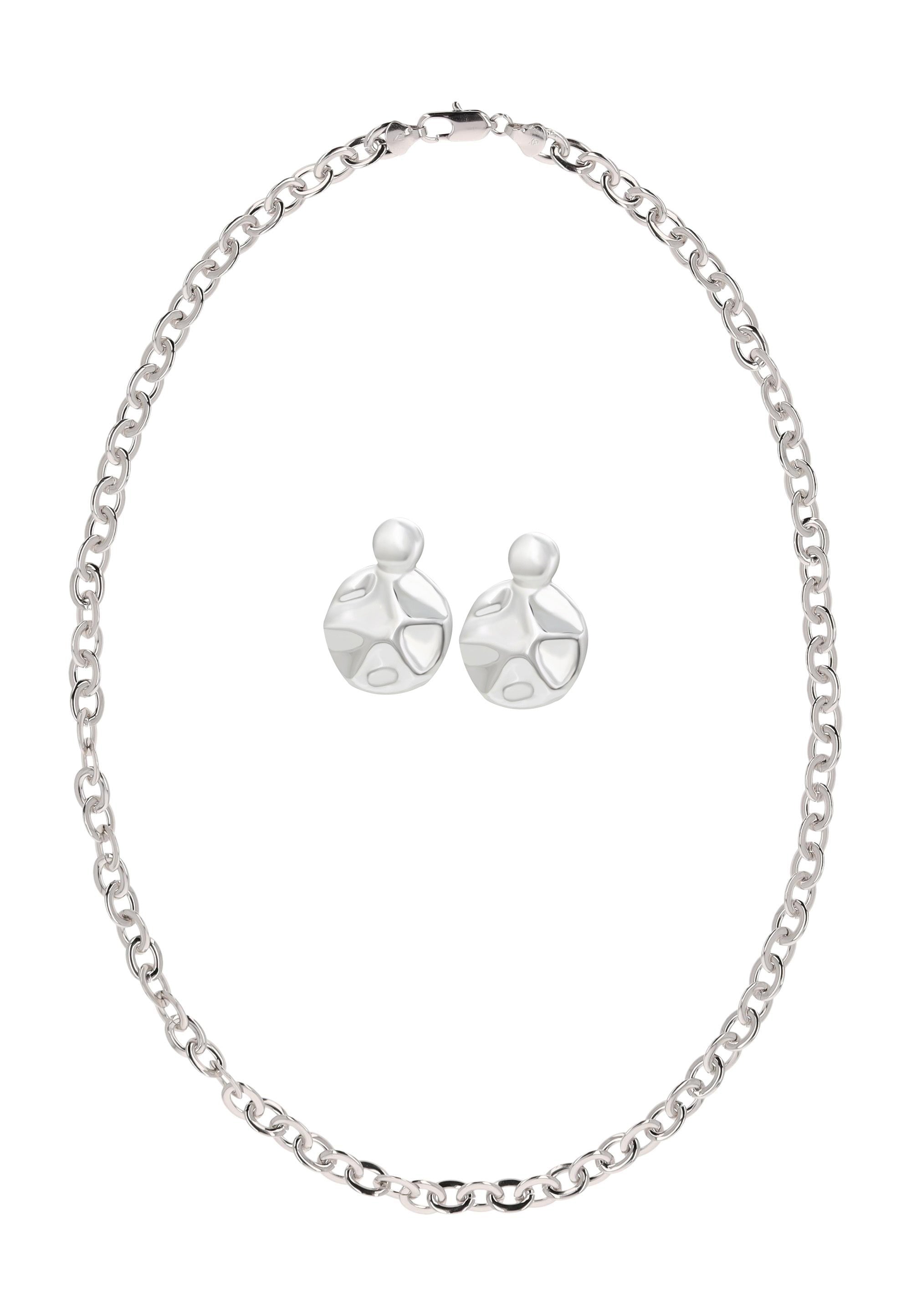 Fügen Sie mit diesem Schmuckset aus unserer Schmuckkollektion subtile Raffinesse hinzu. Dieses Halsketten- + Ohrring-Set ist aus Kupfer mit einem schlichten Muster gefertigt und verfügt über eine klassische Kettenhalskette mit einem sicheren Karabinerverschluss. Die passenden organisch geformten Ohrringe sind mit Schmetterlingsverschlüssen für einen bequemen, zuverlässigen Sitz versehen. Elegant, vielseitig und zeitlos verleiht dieses Set sowohl Alltagsoutfits als auch besonderen Anlässen unaufdringlichen Charme.
