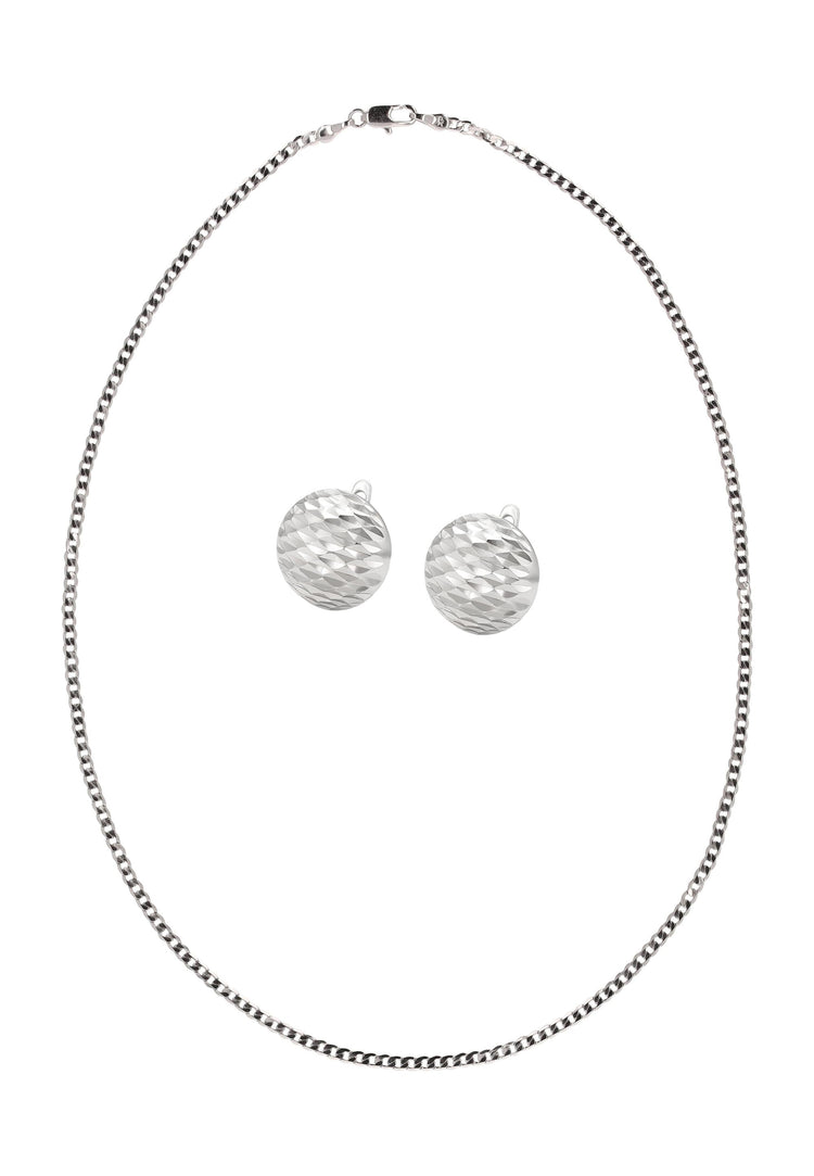 Verleihen Sie Ihrem Alltagsstil mit diesem Schmuckset aus unserer Schmuckkollektion eine besondere Note. Dieses Halsketten- + Ohrring-Set ist aus Kupfer mit einem schlichten Muster gefertigt und verfügt über eine klassische Kettenhalskette mit einem sicheren Karabinerverschluss. Die passenden runden Ohrringe sind mit Steckverschluss versehen für einen bequemen, zuverlässigen Sitz. Elegant, vielseitig und zeitlos verleiht dieses Set sowohl legeren als auch festlichen Outfits subtile Raffinesse.