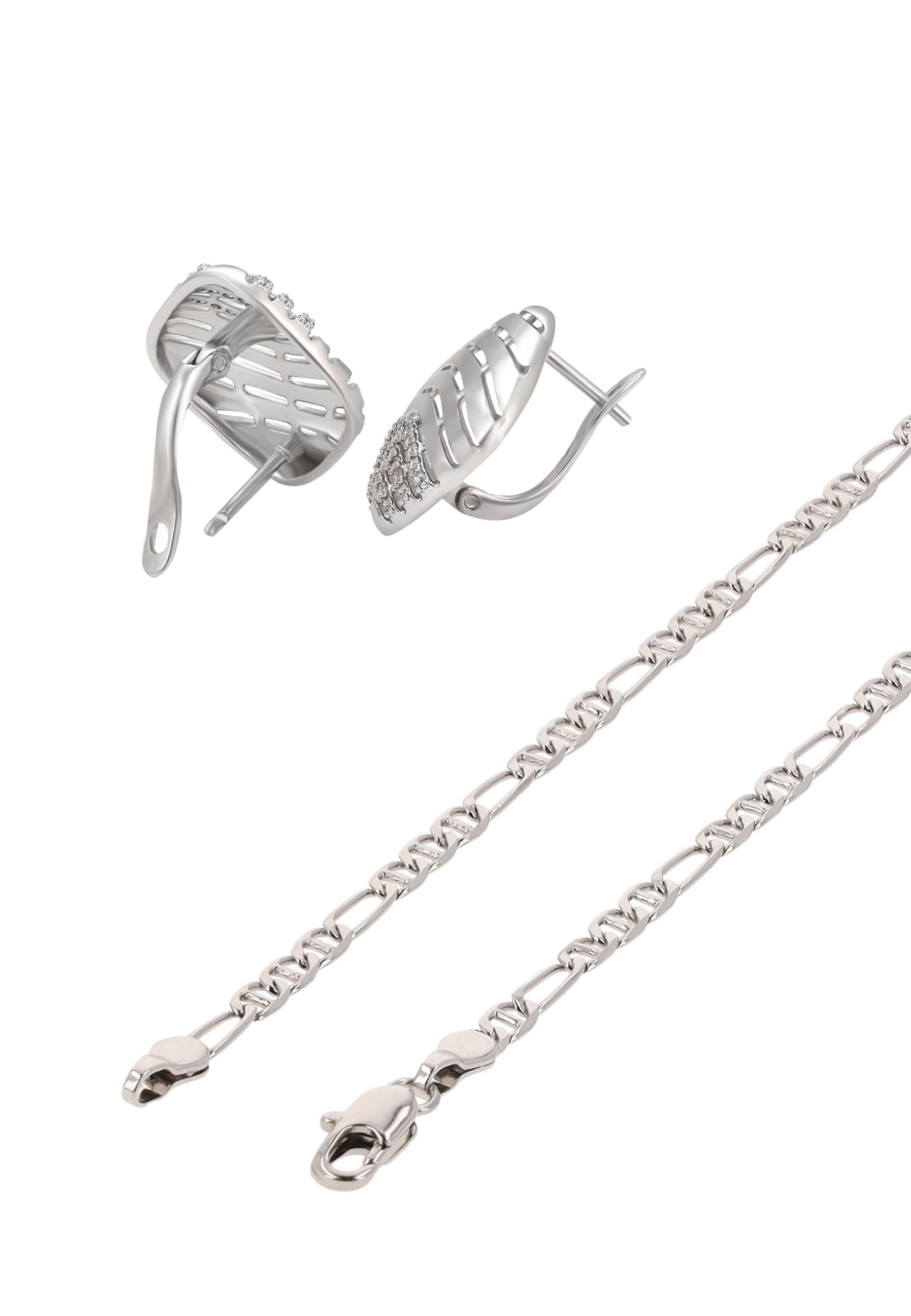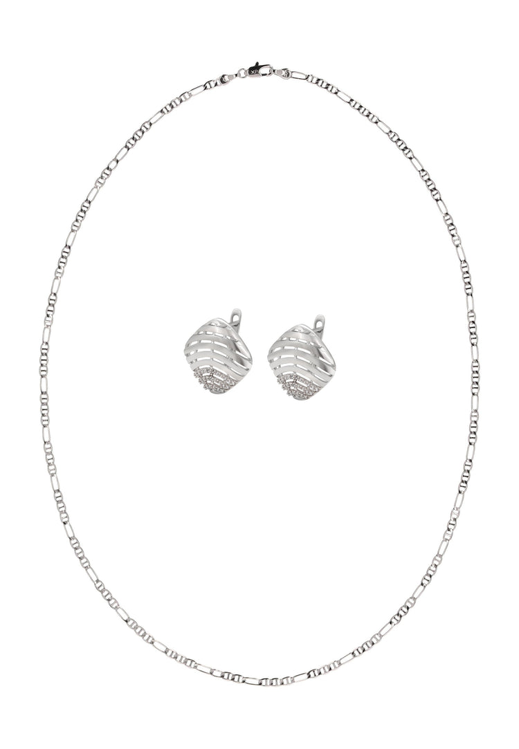 Fügen Sie mit diesem Schmuckset aus unserer Schmuckkollektion einen Hauch von feinem Glanz hinzu. Dieses Halsketten- + Ohrring-Set ist aus Kupfer mit einem schlichten Muster gefertigt und verfügt über eine klassische Kettenhalskette mit einem sicheren Karabinerverschluss. Die passenden Ohrringe schimmern zart mit Strasssteinen und sind mit Steckverschluss für einen bequemen, zuverlässigen Sitz versehen. Elegant, vielseitig und zeitlos bringt dieses Set subtile Raffinesse sowohl in Alltagsoutfits als auch zu besonderen Anlässen.