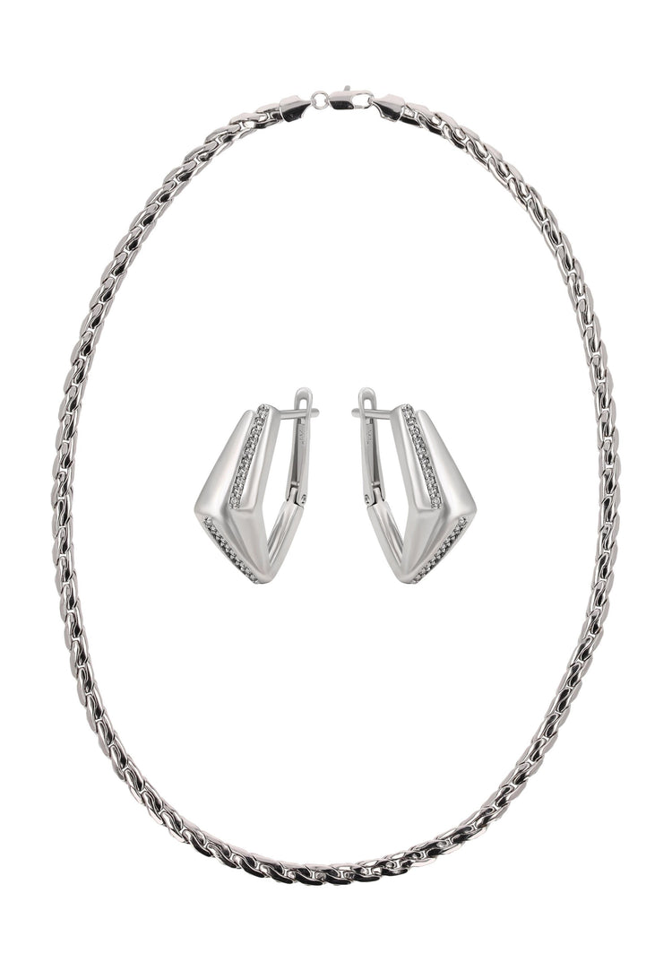 Fügen Sie mühelose Eleganz mit diesem Schmuckset aus unserer Schmuckkollektion hinzu. Dieses Halsketten- + Ohrring-Set ist aus Kupfer mit einem schlichten Muster gefertigt und verfügt über eine Kettenhalskette mit einem sicheren Karabinerverschluss. Die passenden Ohrringe sind mit Strasssteinen verziert und mit Steckverschluss für einen bequemen, zuverlässigen Sitz versehen. Elegant, vielseitig und zeitlos bringt dieses Set einen raffinierten Glanz sowohl zu Alltagsoutfits als auch zu besonderen Anlässen.