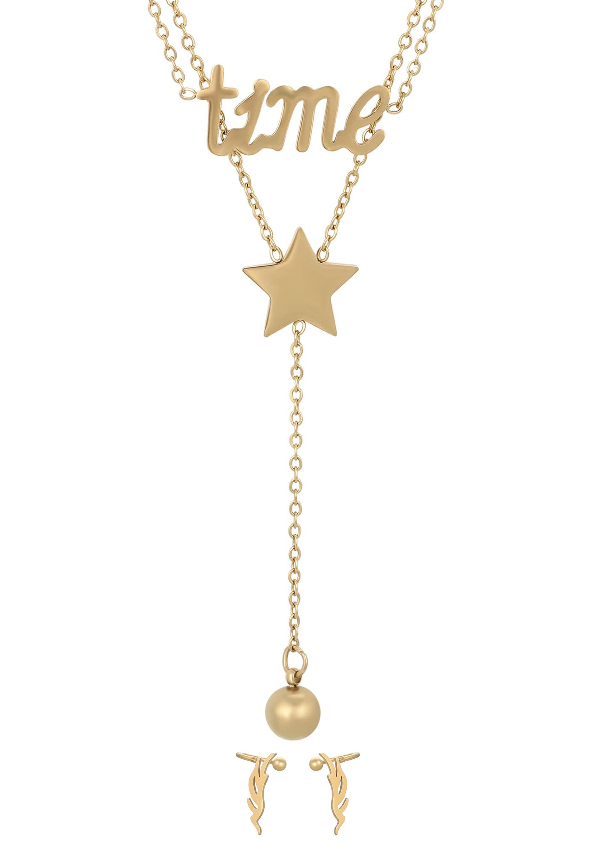 Dieses elegante Schmuckset umfasst eine Lariat-Halskette aus zartem Kettchen und stilvolle Manschettenohrringe. Die Halskette wird mit einem praktischen Karabinerverschluss geschlossen und ist mit einem dezenten Sternmotiv verziert, das dem Stück eine einzigartige Note verleiht. Hergestellt aus Edelstahl, ist das Set langlebig, zeitlos und unglaublich vielseitig. Es ergänzt ein Alltagsoutfit perfekt.