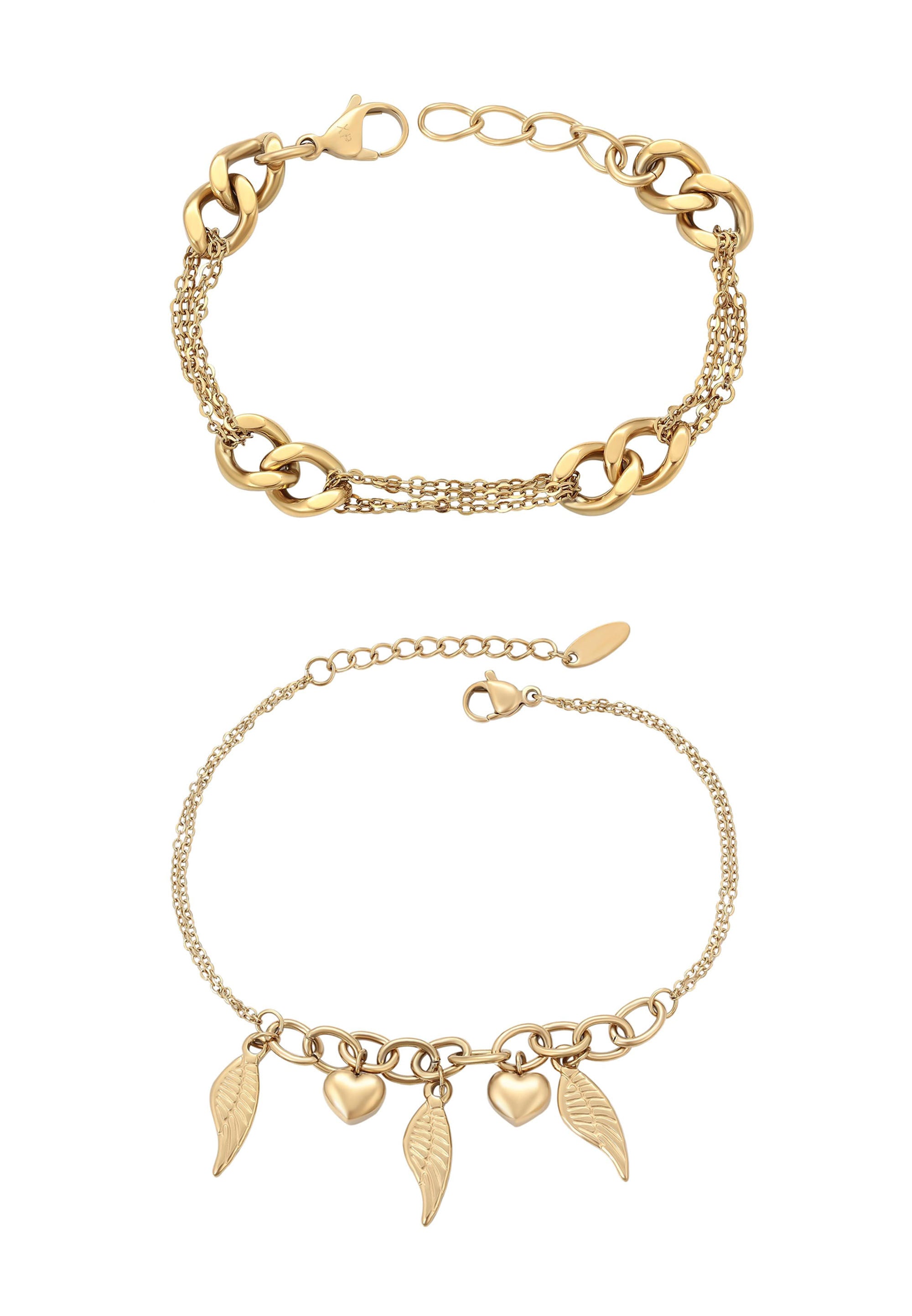 Betonen Sie Ihre Eleganz mit unserem Schmuckset. Edelstahl-Kettenarmbänder mit Karabinerverschluss verbinden Haltbarkeit mit Komfort. Das mehrschichtige Design und die zarten Anhänger verleihen ihnen einen einzigartigen Charakter, während das glatte, schlichte Muster einen universellen Stil betont. Dieses zeitlose, vielseitige und elegante Set ergänzt jede Schmucksammlung perfekt und passt sowohl zu legeren als auch zu formelleren Outfits.