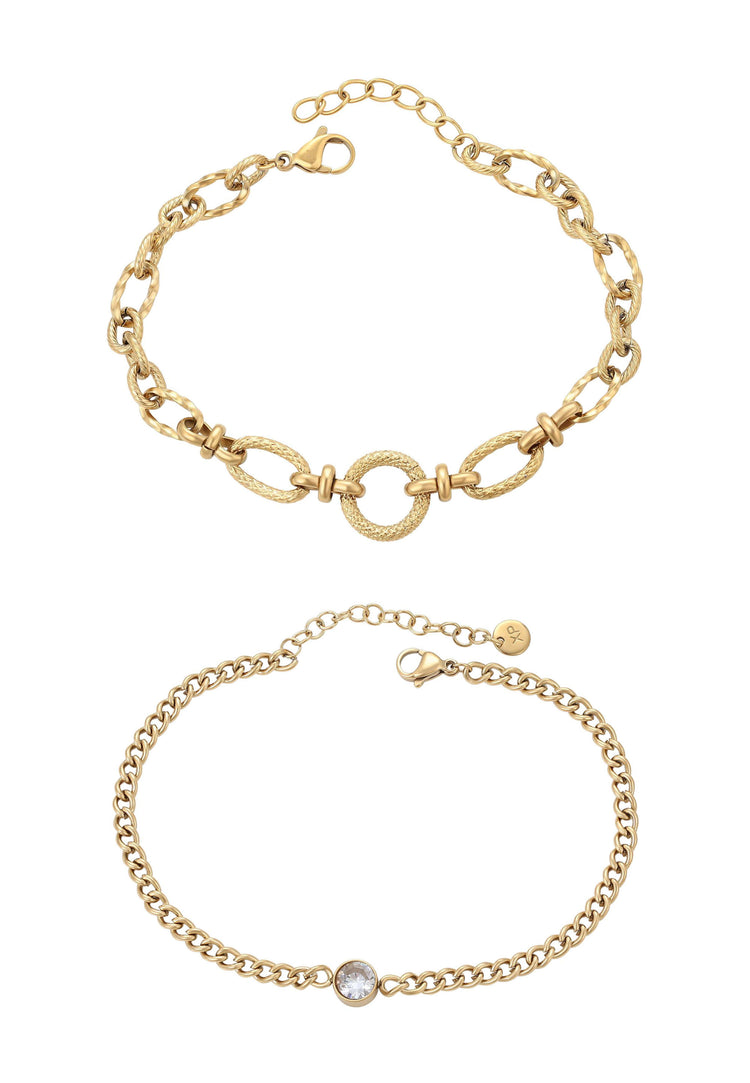Fügen Sie jedem Outfit Eleganz und zeitlosen Stil mit unserem Set aus Kettenarmbändern hinzu. Hergestellt aus gemischten Materialien und mit einem Karabinerverschluss versehen, verbinden diese Armbänder Haltbarkeit mit Komfort. Das strukturierte Design verleiht eine einzigartige Note und betont ihre Eleganz und Vielseitigkeit. Dieses zeitlose und vielseitige Set ergänzt jede Schmucksammlung perfekt und passt sowohl zu lässigen als auch zu eleganten Outfits.