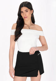 Erhöhen Sie Ihren Alltagskleiderschrank mit diesem stilvollen weißen Bandeau-Top. Hergestellt aus weichem Strickstoff, hat es eine reguläre Passform, die Ihre natürlichen Kurven betont und gleichzeitig den ganzen Tag Komfort bietet. Der Bandeau-Ausschnitt mit offenen Schultern verleiht einen modernen, femininen Touch, perfekt für Modebegeisterte, die eine Kombination aus lässig und schick suchen. Perfekt für den täglichen Gebrauch, ist dieses einfache, aber raffinierte Modell ein Muss in Ihrem Kleiderschrank. Es ist Teil der Fashion Look Kollektion.