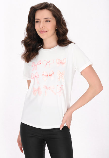 Entdecken Sie eine verspielte Ergänzung zu Ihrer täglichen Fashion-Look-Kollektion: Dieses T-Shirt im romantischen Stil verfügt über einen Rundhalsausschnitt und kurze Ärmel, verziert mit einem entzückenden Druck. Hergestellt aus weichem Strickstoff, sorgt es für Komfort im Alltag. Seine reguläre Passform verleiht einen trendigen Touch und macht es ideal zum Kombinieren mit verschiedenen Outfits.