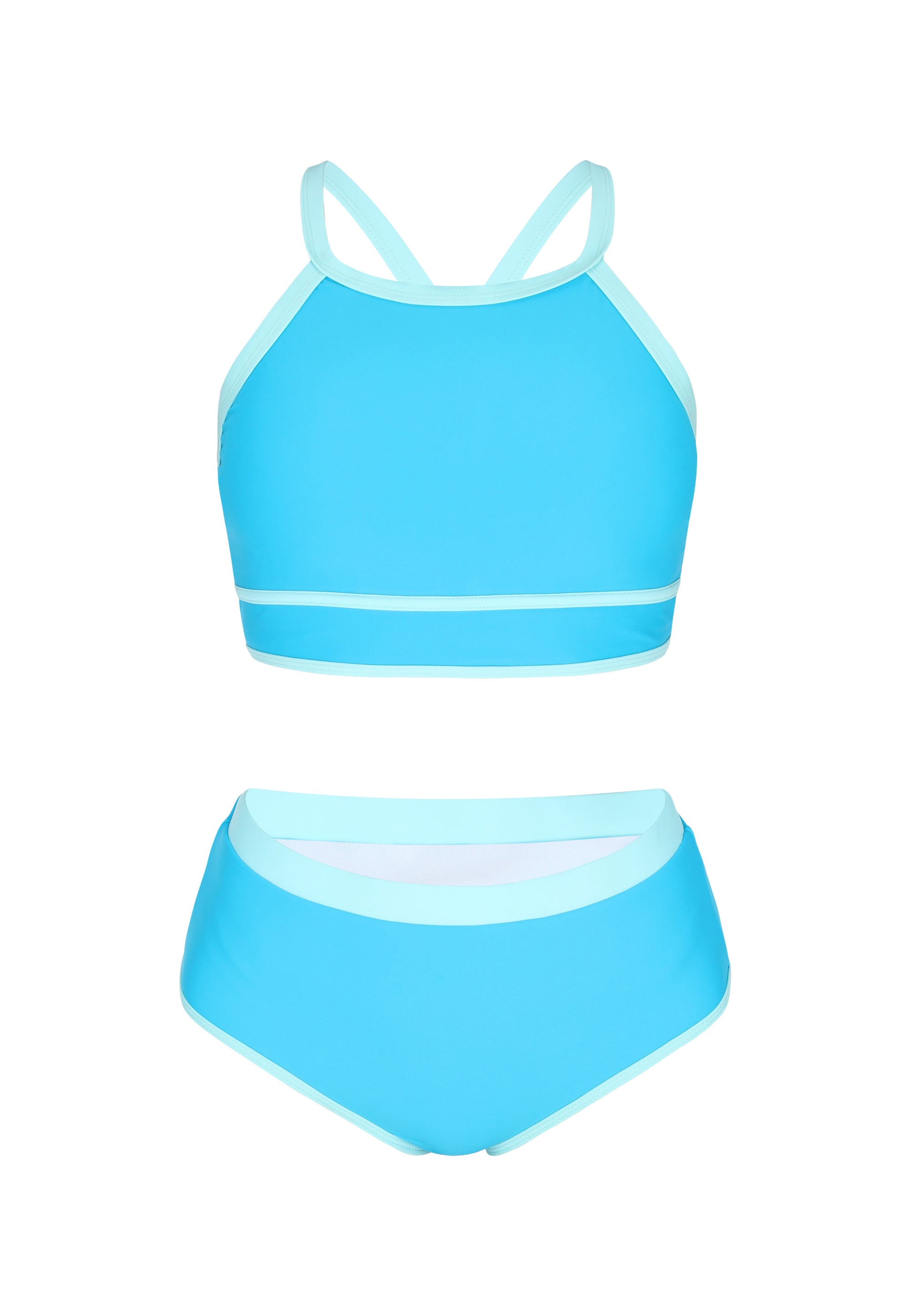 Keyword: bequem, kontrastierende Einfassung, elastisch, Mode-Liebhaber, Halter, hohe Taille, einfarbig, Polyamid, ärmellos, schlanke Passform, stilvoll, Badebekleidungskollektion, Oberteil + Hose, modisch, Zweiteiliger Badeanzug