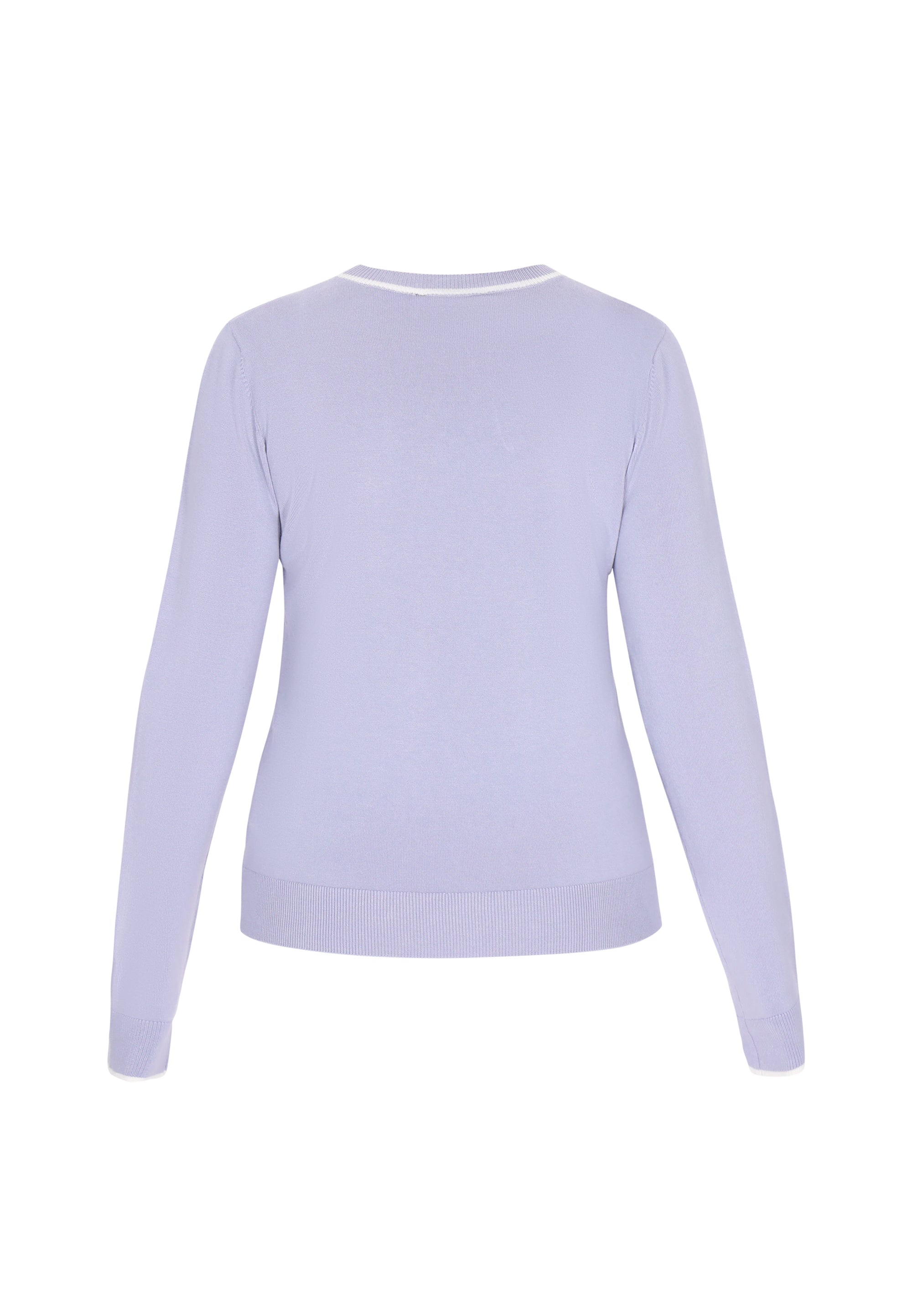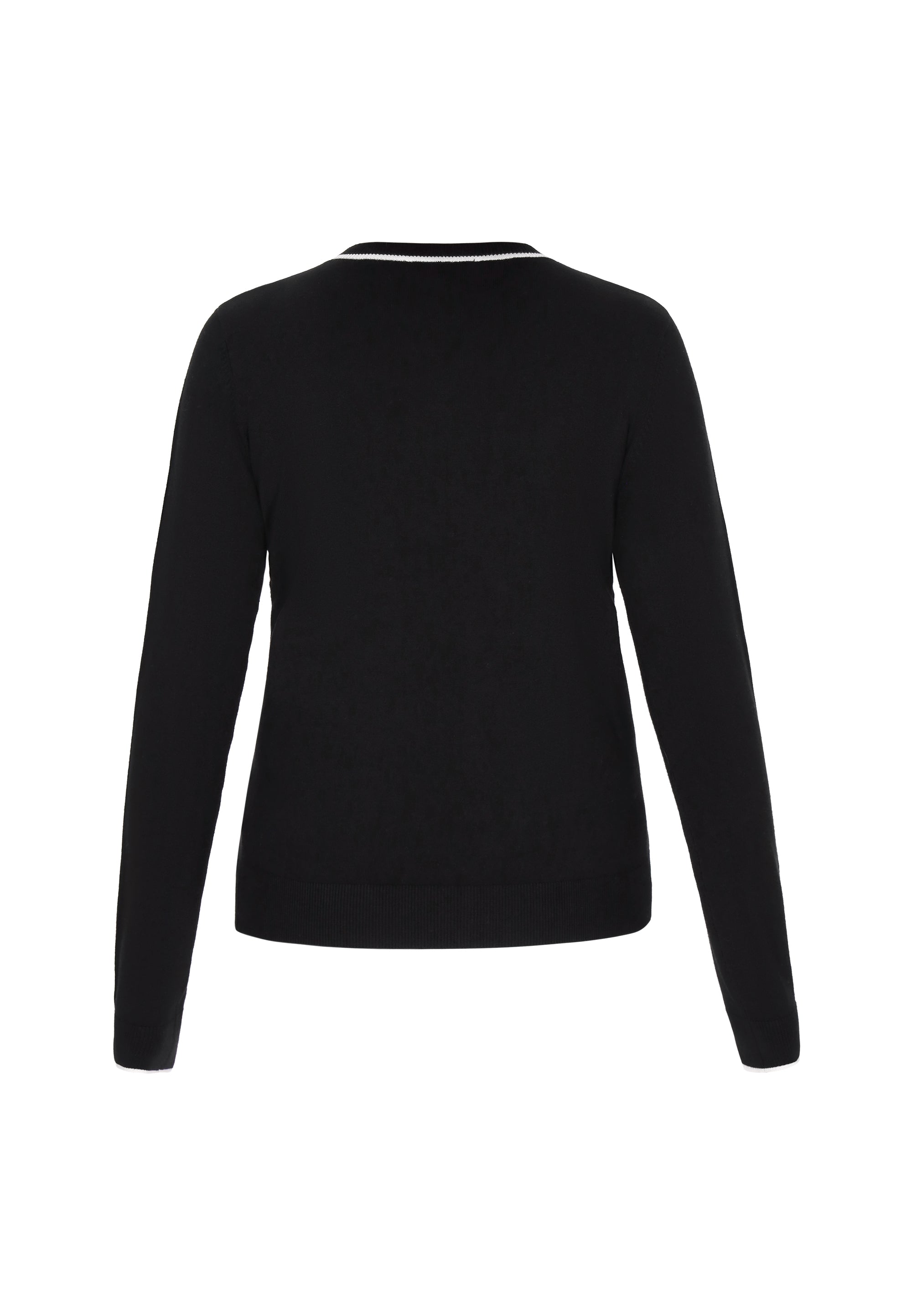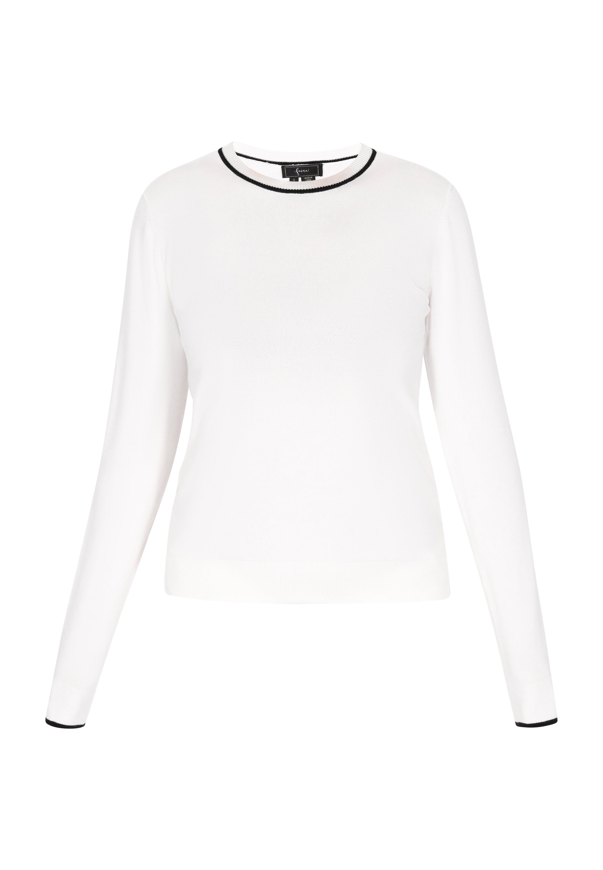 Przedstawiamy stylowy sweter o regularnym kroju i okrągłym dekolcie z kontrastową lamówką, idealny na co dzień. Ten dzianinowy model ma długie rękawy z kontrastowymi lamówkami, które dodają eleganckiego akcentu. Luźny krój zapewnia komfort, czyniąc go idealnym na codzienne stylizacje.... Niezbędny element dla miłośników mody poszukujących wygodnych ubrań. Jest częścią kolekcji Comfortable Collection.
