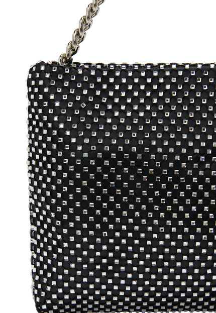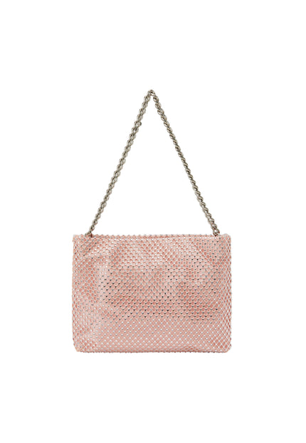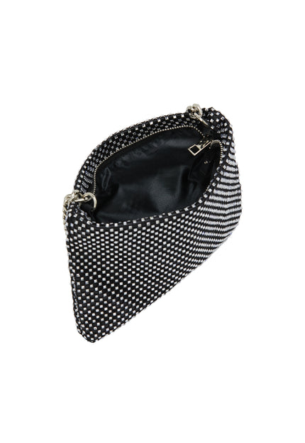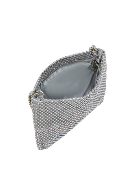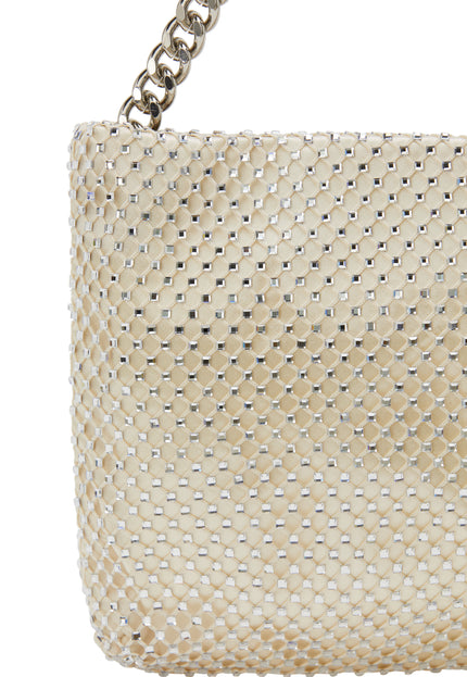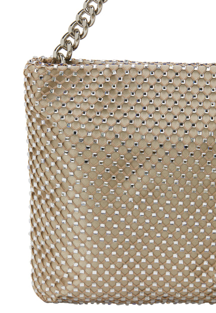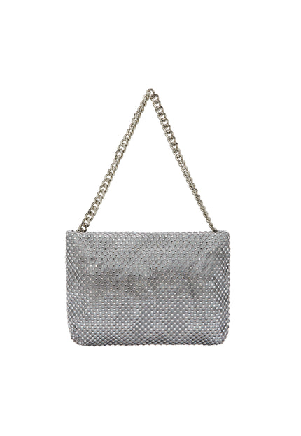 Podkreśl swój styl tą usztywnioną torebką ozdobioną oszałamiającym ażurowym wzorem, który przyciąga wzrok. Elegancki łańcuszkowy pasek, wykonany z połączonych metalowych ogniw, oferuje wszechstronne możliwości stylizacji na każdą okazję. Wyposażona w bezpieczne zamknięcie na zamek błyskawiczny, ta elegancka rzecz jest idealna na wieczorne wydarzenia i dodaje wyrafinowania Twojej stylizacji.