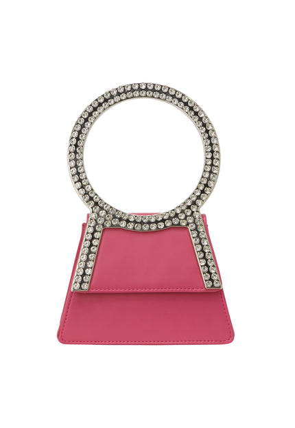 Podkreśl swój styl dzięki tej usztywnianej torebce z eleganckim okrągłym uchwytem ozdobionym błyszczącymi zdobieniami. Trapezowe ciało torebki zwęża się elegancko i posiada wyrafinowany klapę. Idealna na każdą imprezę, oferuje dodatkowy łańcuszek, wewnętrzną kieszeń dla wygody oraz uniwersalny jednolity wzór kolorystyczny, który z łatwością uzupełni Twój wygląd.