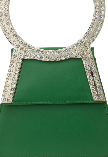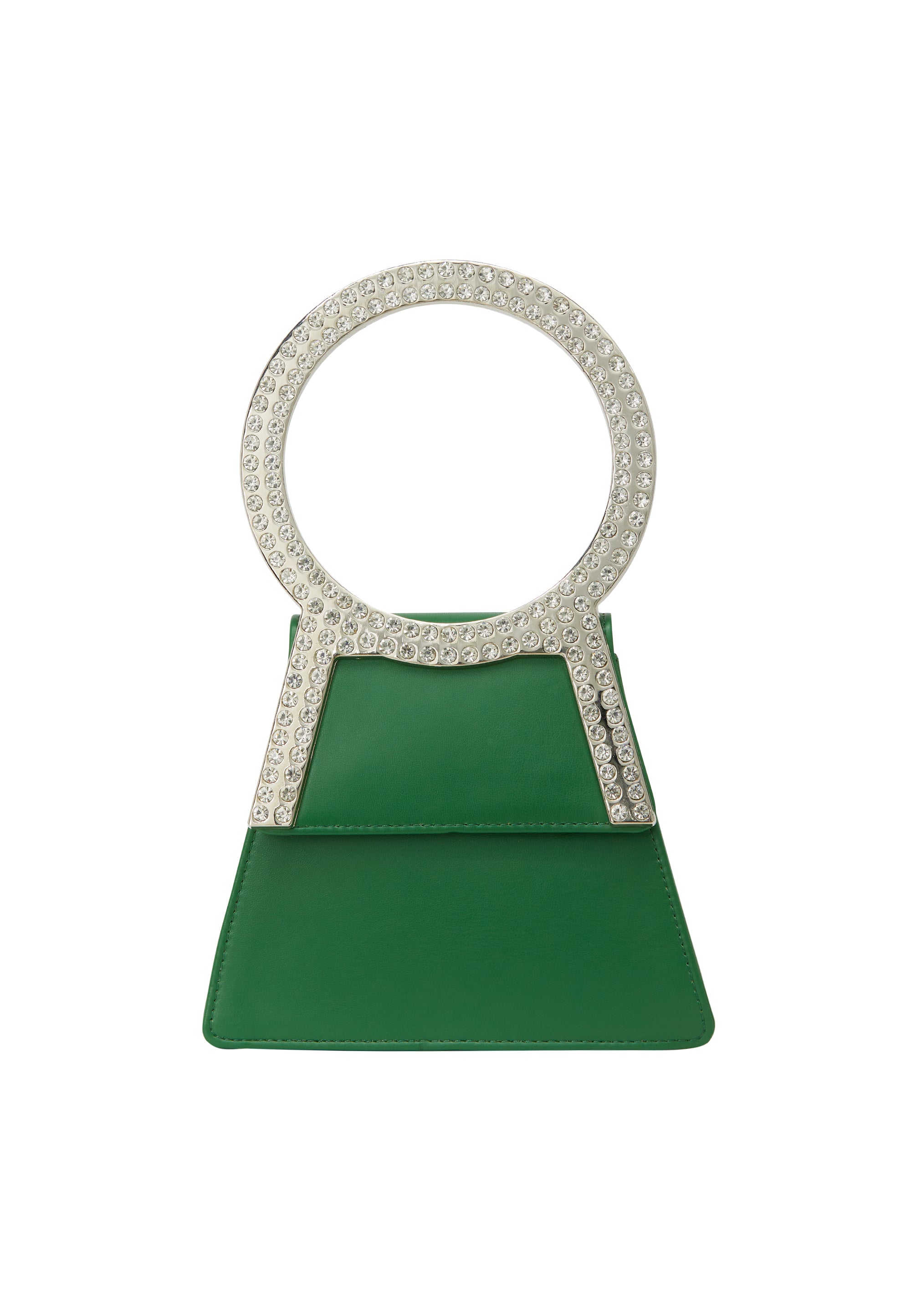 Odkryj torebkę z okrągłym uchwytem ozdobionym błyszczącymi zdobieniami, dodającymi odrobinę blasku. Strukturalne ciało zwęża się do smukłego, trójkątnego kształtu, idealnego na różne okazje. Posiada dodatkowy łańcuszek, wewnętrzną kieszeń oraz zapięcie na klapę dla zwiększenia funkcjonalności. Idealna na imprezy dzięki eleganckiemu, a zarazem nowoczesnemu designowi.