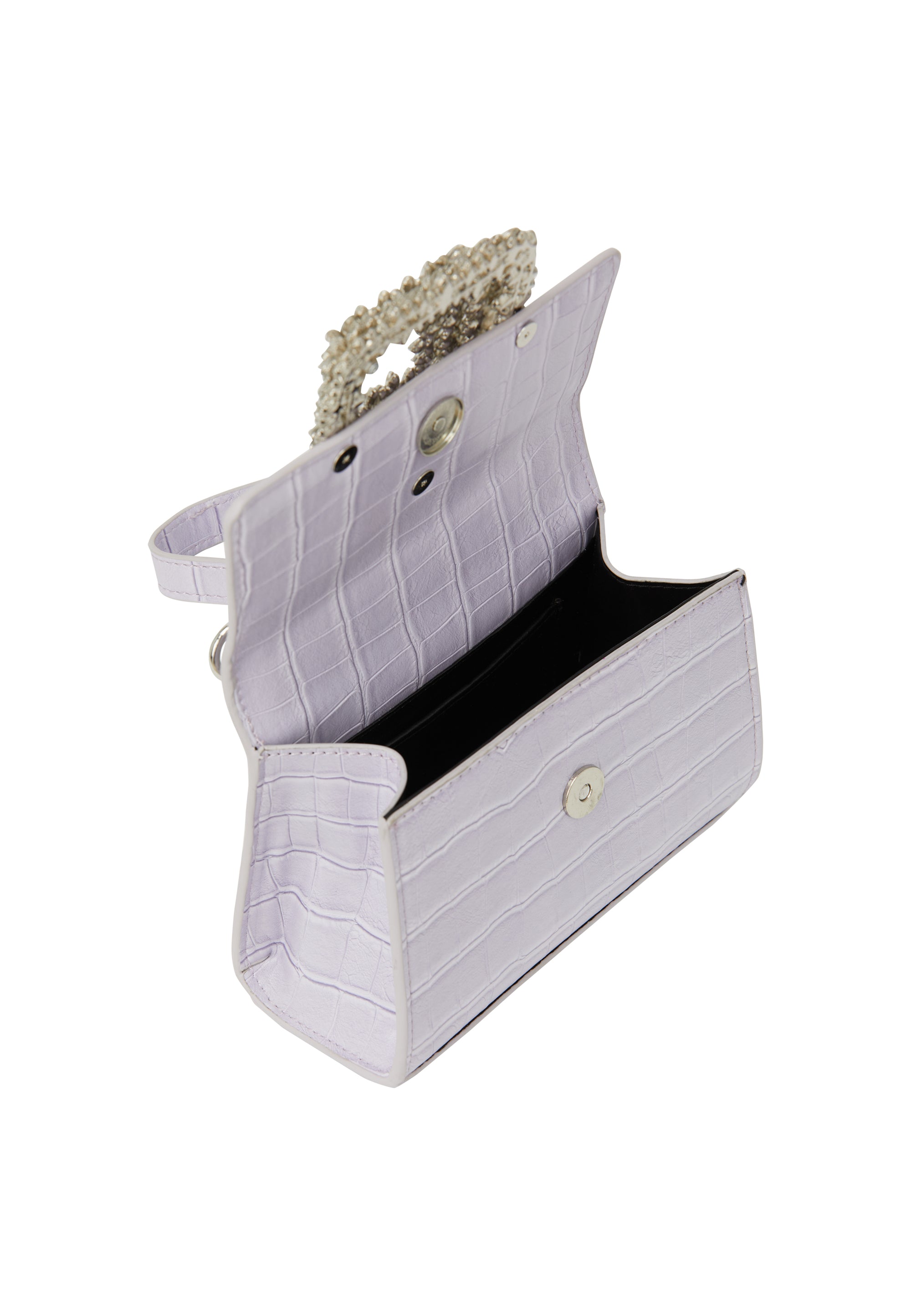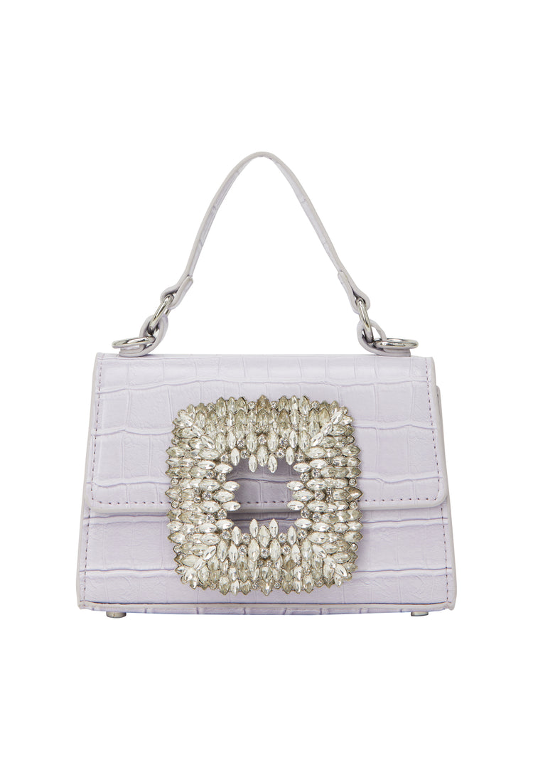 Podkreśl swój styl dzięki tej wyrafinowanej torebce, wykonanej z teksturowanej powierzchni przypominającej skórę gadów. Olśniewający wzór diamentowy dodaje luksusowego akcentu, a dodatkowy łańcuszkowy uchwyt umożliwia wygodne noszenie. Ciesz się praktycznością wewnętrznej kieszeni pod klapą zamknięcia. Idealna na każdą imprezę, ta nowoczesna konstrukcja emanuje elegancją i urokiem.