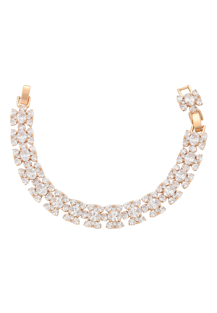Dodaj luksusowy akcent dzięki tej bransoletce wysadzanej kryształami z naszej Kolekcji Biżuterii. Wykonana z miedzi i posiadająca błyszczący wzór, jest zabezpieczona zapięciem na zatrzask dla wygodnego dopasowania. Elegancka, lśniąca i ponadczasowa, ta bransoletka wnosi bezwysiłkową elegancję zarówno do codziennych stylizacji, jak i na specjalne okazje.