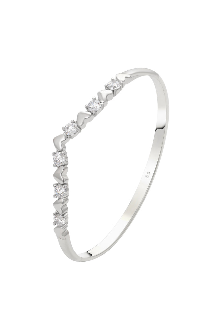 Ta unikalna bransoletka z Kolekcji Biżuterii, wykonana z miedzi, zachwyca swoim lśniącym wykończeniem i delikatnym motywem serca ozdobionym błyszczącymi kryształami. Połączenie luksusu i subtelności sprawia, że jest to idealny dodatek do każdej eleganckiej stylizacji. Praktyczne zapięcie zapewnia komfort i bezpieczeństwo, dzięki czemu bransoletka jest doskonała na specjalne, romantyczne okazje.