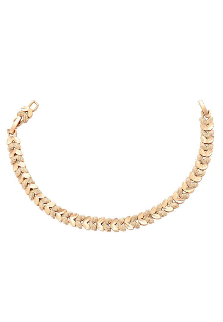 Uzupełnij swój strój tym eleganckim bransoletką z przeplatanymi ogniwami przypominającymi stylizowane liście lub serca. Gładka, polerowana powierzchnia jest uzupełniona teksturowanymi elementami dla dodatkowego uroku. Zapięta na składane zapięcie, ta elegancka bransoletka ma koralikowy wzór i błyszczące cyrkonie, tworząc ponadczasowy element. Część naszej Kolekcji Biżuterii.