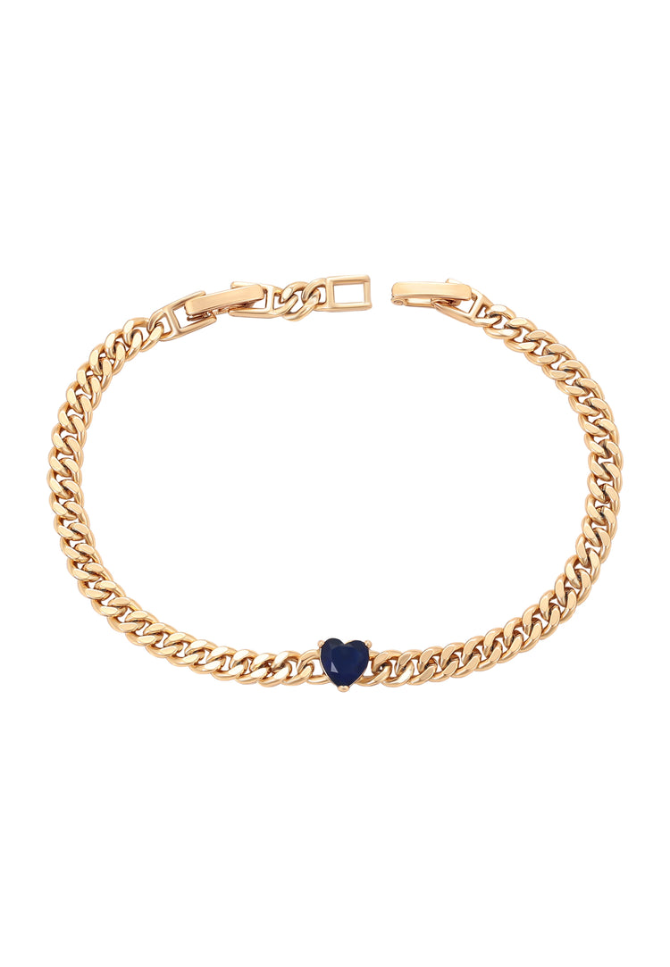 Dodaj uroczy akcent dzięki tej bransoletce z ogniw łańcucha ozdobionej kryształami z naszej Kolekcji Biżuterii. Wykonana z miedzi, posiada klasyczny wzór łańcucha typu curb, podkreślony delikatnym motywem serca i gładkim wzorem. Zabezpieczona zapięciem na zatrzask, ta elegancka, wszechstronna i ponadczasowa ozdoba doskonale uzupełnia każdy strój.