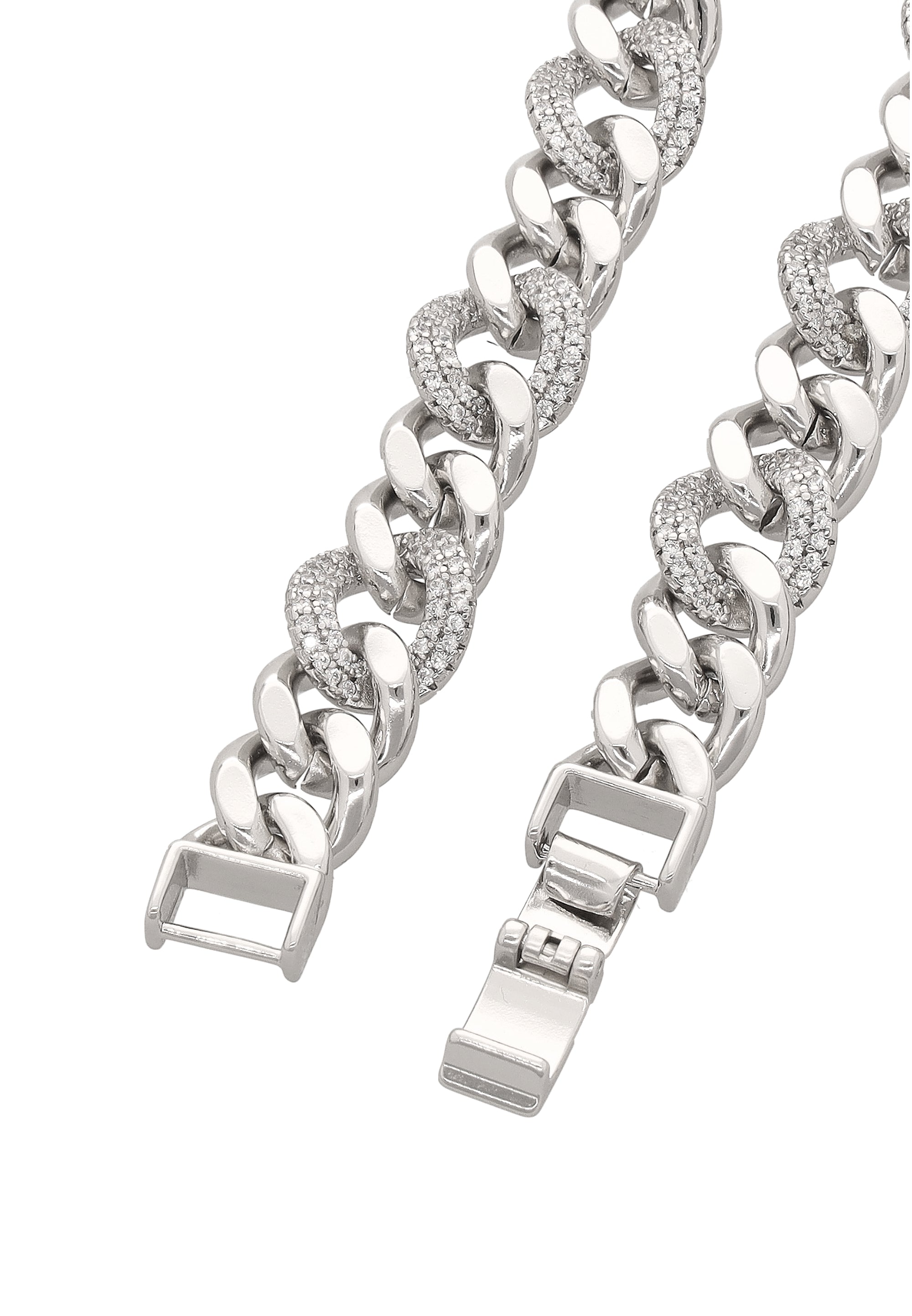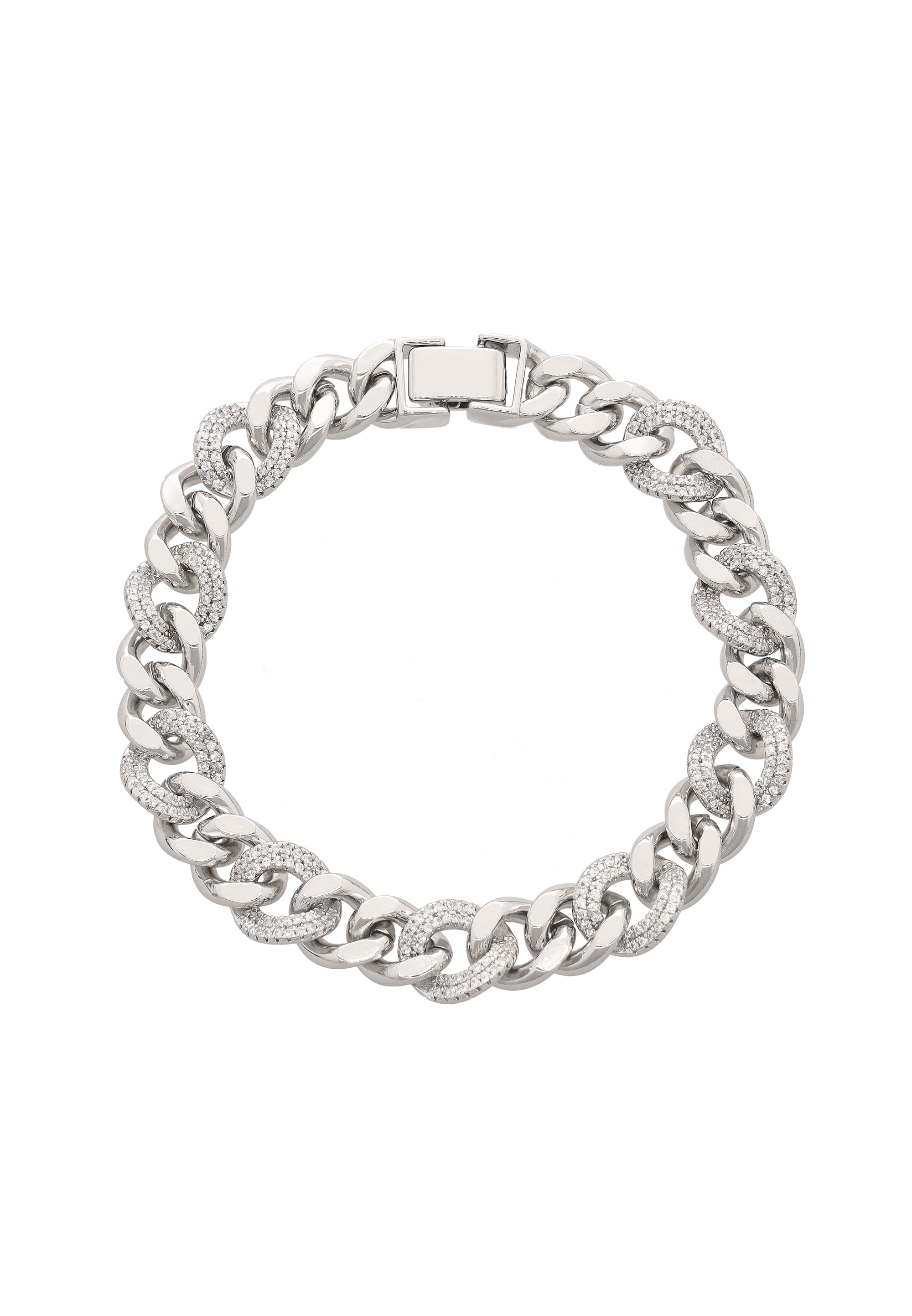 Dodaj odrobinę błyszczącej elegancji dzięki tej bransoletce z ogniw łańcucha z naszej Kolekcji Biżuterii. Wykonana z trwałej stali nierdzewnej, posiada klasyczny wzór łańcucha typu curb z gładkim motywem podkreślonym migoczącymi cyrkoniami. Zabezpieczona niezawodnym zapięciem typu fold-over, ta elegancka i ponadczasowa ozdoba doskonale uzupełnia zarówno codzienne, jak i okazjonalne stroje, czyniąc ją wszechstronnym dodatkiem do każdej kolekcji biżuterii.