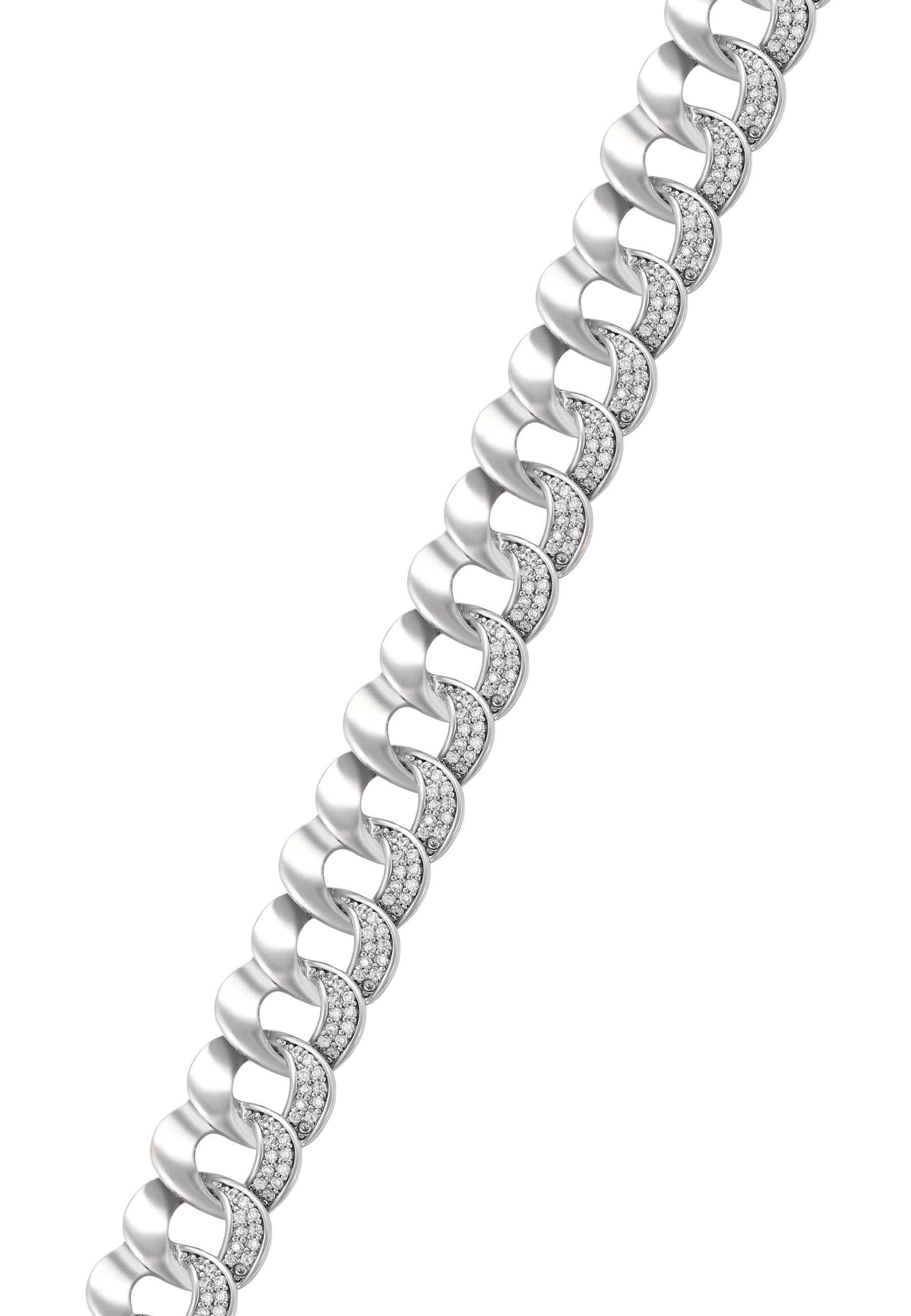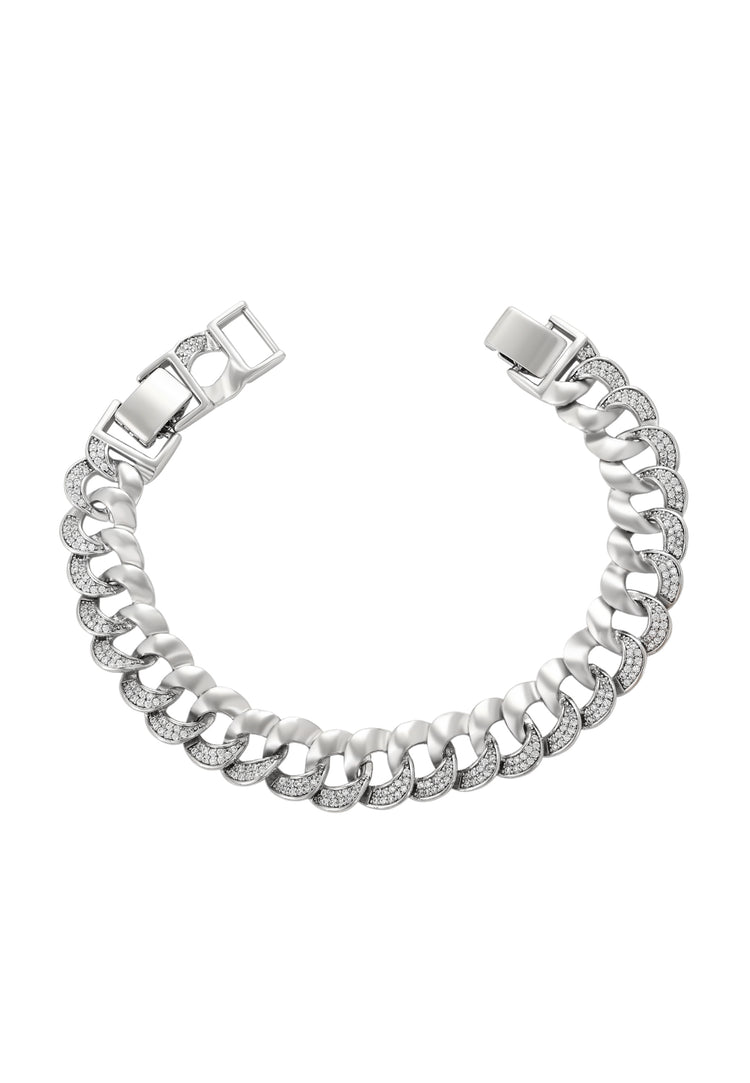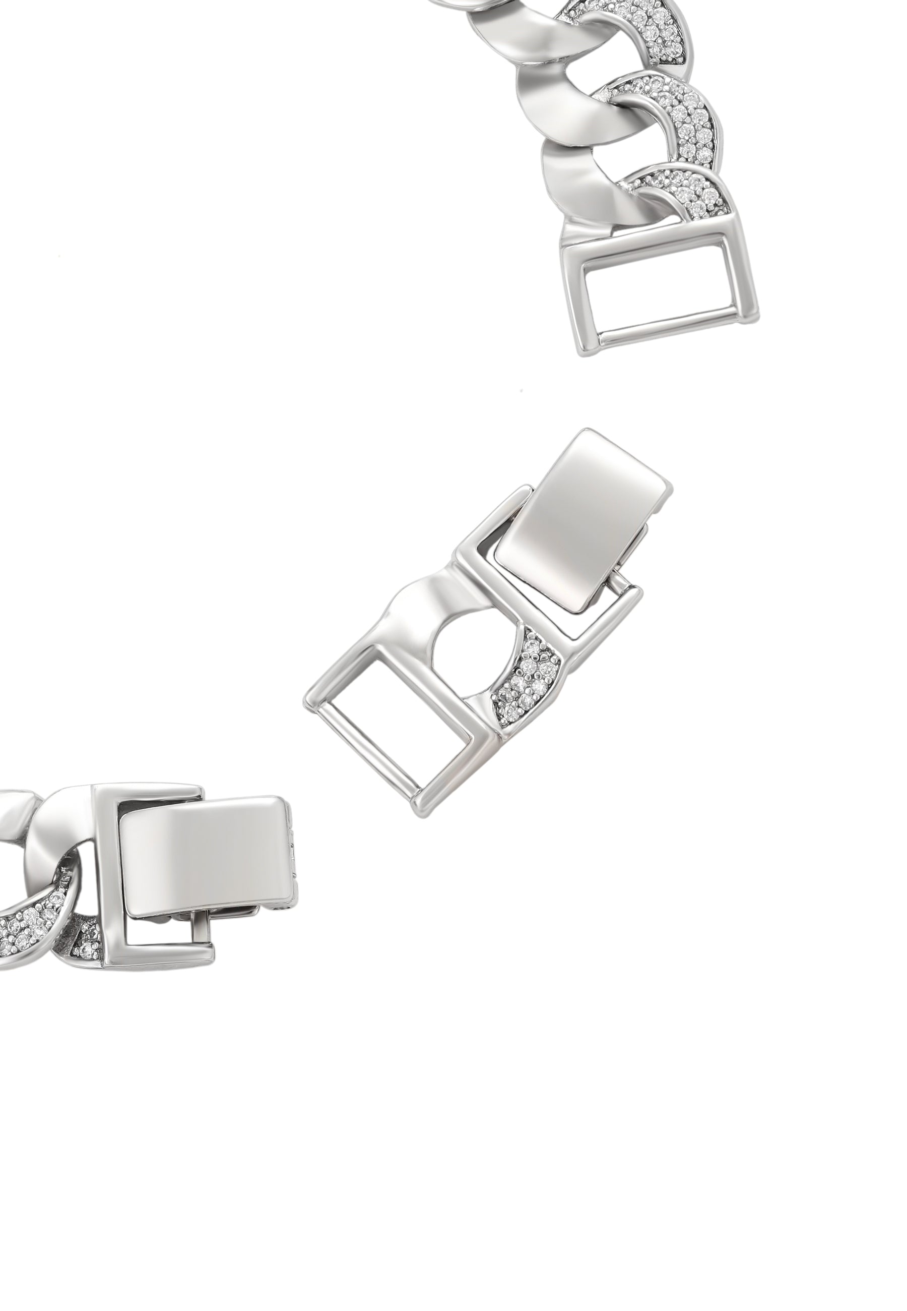 Przedstawiamy bransoletkę z odważnym, splecionym wzorem ogniw, charakteryzującą się gładkimi, zaokrąglonymi kształtami tworzącymi płynny wygląd. Błyszczące cyrkonie zdobią ogniwa, dodając odrobinę elegancji. Zapięcie na klamrę zapewnia komfort i bezpieczeństwo. Nowoczesny i modny dodatek, odpowiedni na każdą okazję, od codziennej po formalną. Część naszej Kolekcji Biżuterii.