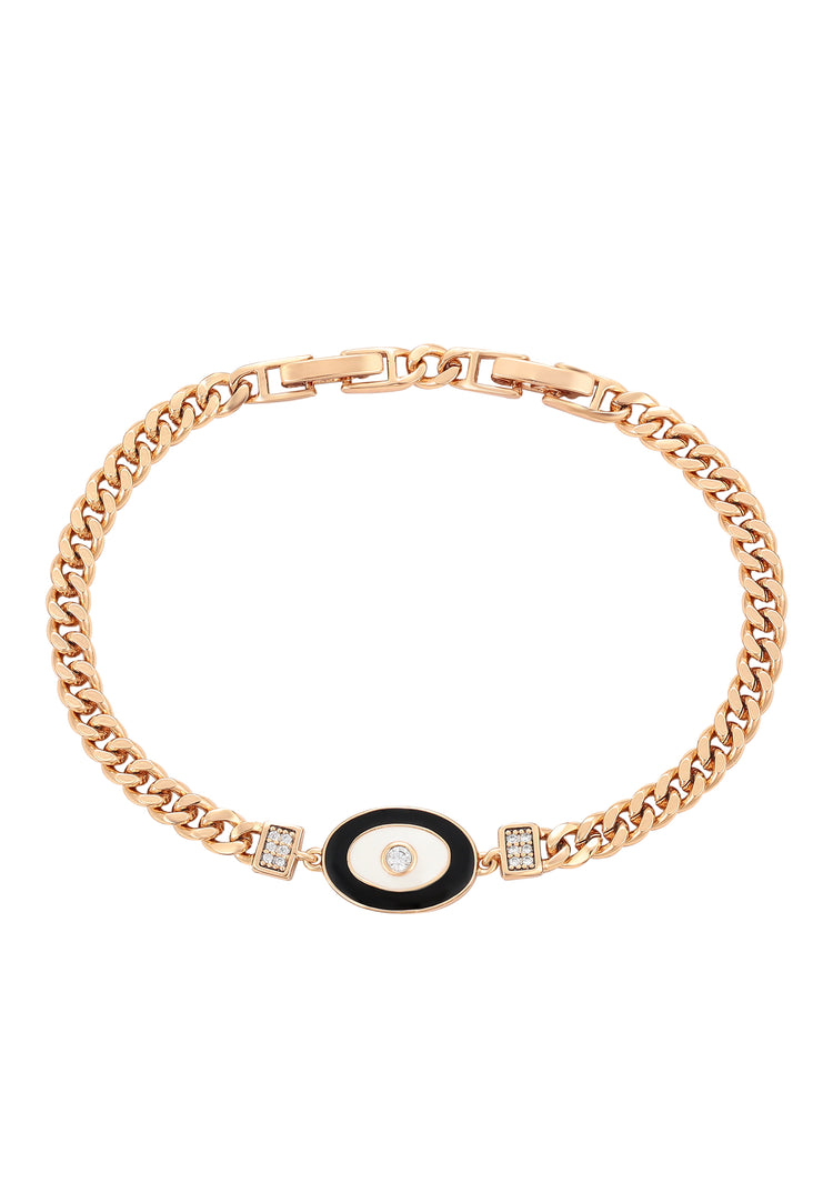 Dodaj błyszczący akcent dzięki tej bransoletce z łańcuszkiem curb z naszej Kolekcji Biżuterii. Wykonana z miedzi, posiada prosty wzór i jest ozdobiona błyszczącym wisiorkiem zdobionym kryształkami. Zabezpieczona zapięciem typu fold-over, ten elegancki i ponadczasowy element z łatwością podkreśla zarówno codzienne, jak i wyjątkowe stylizacje.