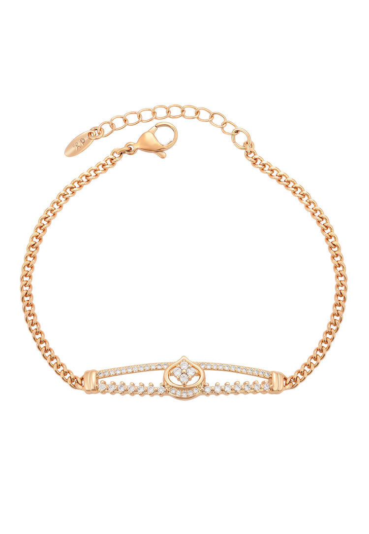 Dodaj odważny, a zarazem wyrafinowany akcent dzięki tej ponadczasowej bransoletce z ogniw łańcucha z naszej Kolekcji Biżuterii. Posiada klasyczny wzór łańcucha curb ozdobiony paskiem zdobionym migoczącymi kryształkami, wykonany jest z polerowanej miedzi z błyszczącym wzorem dla dodatkowego blasku. Zapięcie typu lobster zapewnia bezpieczne i wygodne dopasowanie. Elegancka, migocząca i ponadczasowa, ta bransoletka to idealny dodatek, który podniesie każdą stylizację, od casualowego szyku po wieczorową elegancję.