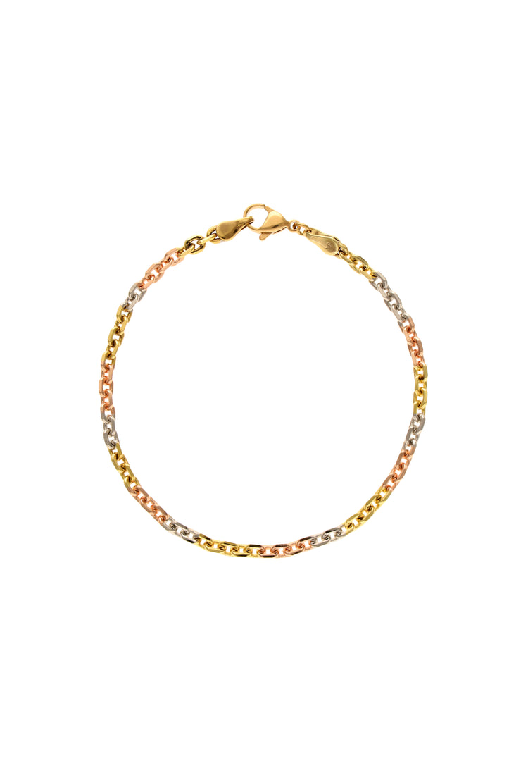 Dodaj żywy akcent do swojego wyglądu dzięki tej bransoletce z ogniw łańcucha z naszej Kolekcji Biżuterii. Wykonana z wysokiej jakości miedzi, posiada wzór łańcucha kablowego z wielotonowym motywem, zapewniającym wyrafinowane, przyciągające wzrok wykończenie. Zabezpieczona niezawodnym zapięciem typu lobster, ta ponadczasowa i wszechstronna bransoletka doskonale uzupełnia zarówno codzienne stroje, jak i zestawy na specjalne okazje.