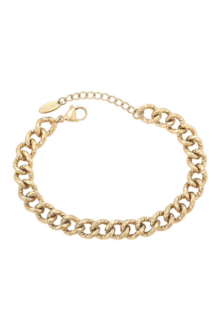 Ta bransoletka z kabla to klasyczny dodatek, który zachwyca swoją prostotą i detalem. Wykonana z wysokiej jakości stali nierdzewnej, posiada teksturowany wzór, który dodaje charakterystycznego i eleganckiego akcentu. Zapięcie zapewnia wygodne i bezpieczne noszenie. Ponadczasowy design sprawia, że bransoletka jest uniwersalna — idealna zarówno do codziennych, jak i bardziej formalnych stylizacji. Must-have z kolekcji biżuterii.