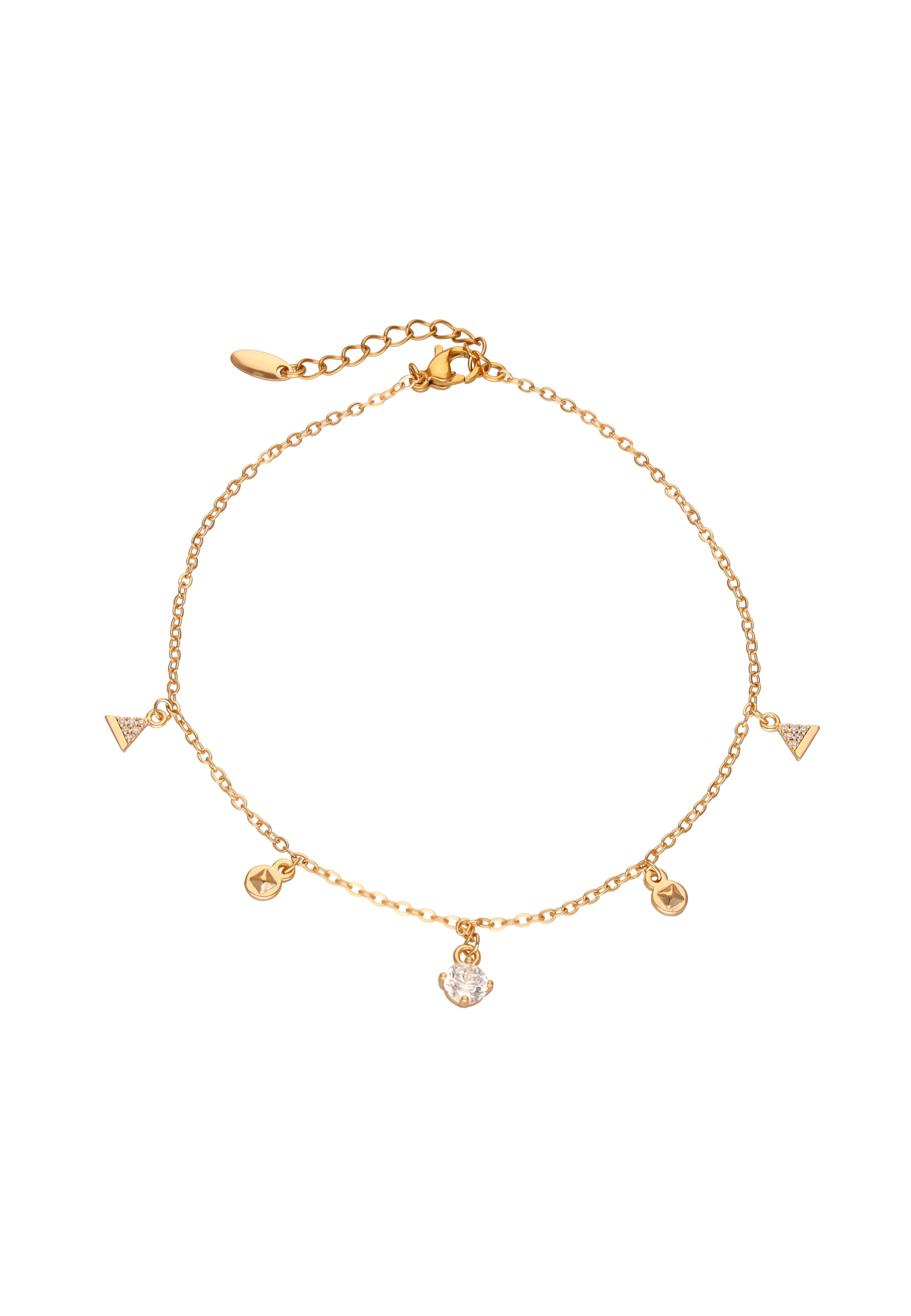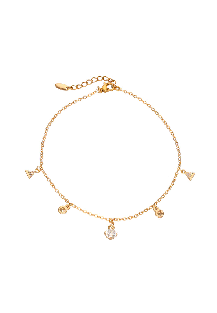 Keyword: anklet bracelet, chain, charms, copper, elegant, jewelry collection, lobster clasp, plain pattern, rhinestones, shimmering, timeless