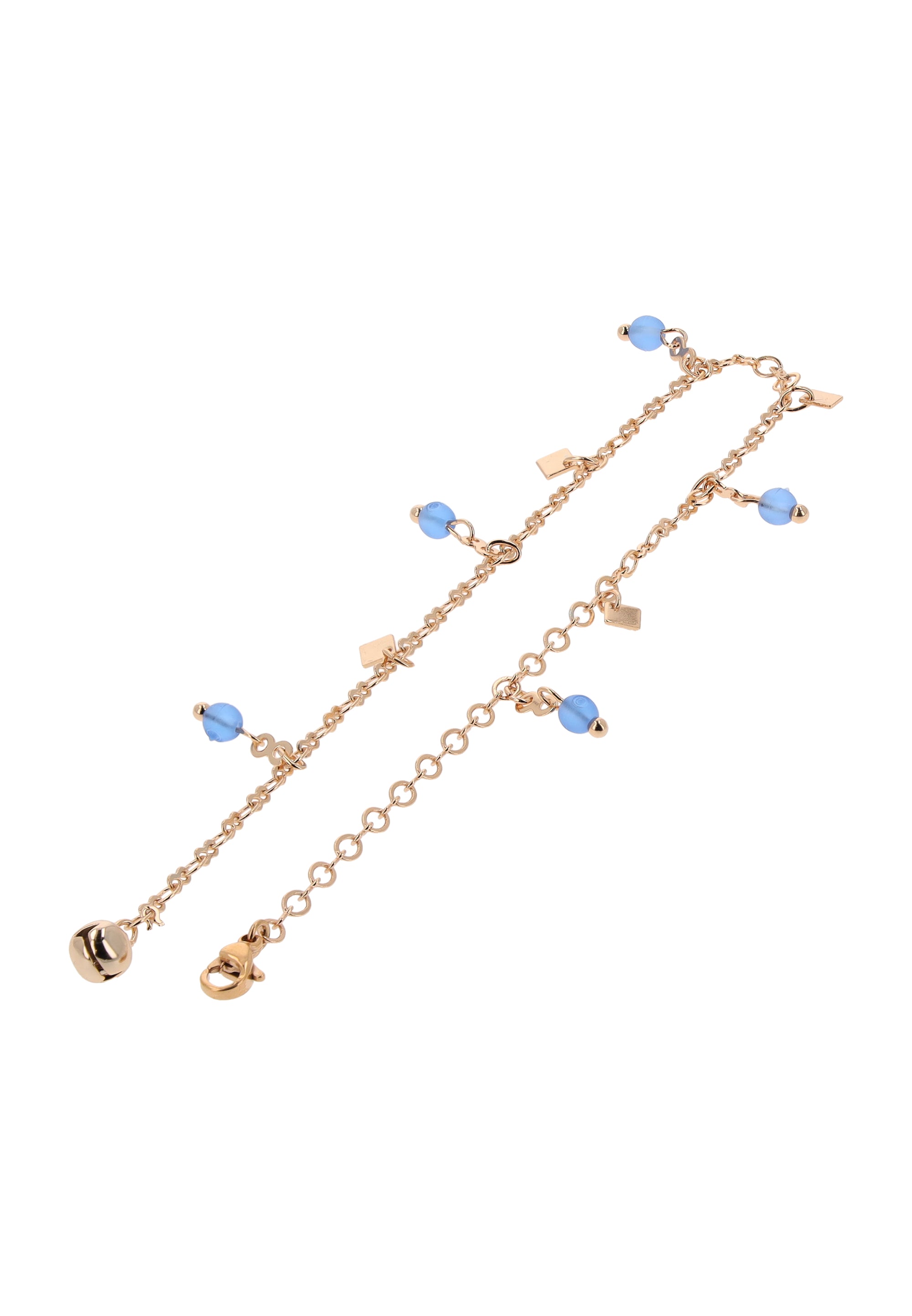 Delikatna bransoletka na kostkę wykonana z miedzi łączy elegancję i ponadczasowy styl. Składa się z łańcuszka ozdobionego koralikami i zawieszkami, które subtelnie poruszają się przy każdym kroku, dodając uroku i lekkości. Bransoletka to uniwersalny dodatek, który dobrze komponuje się z wieczorowymi stylizacjami. Zapięcie typu karabińczyk zapewnia komfort i bezpieczeństwo podczas noszenia. Kobieca, stylowa i ponadczasowa. Jest częścią Kolekcji Biżuterii.