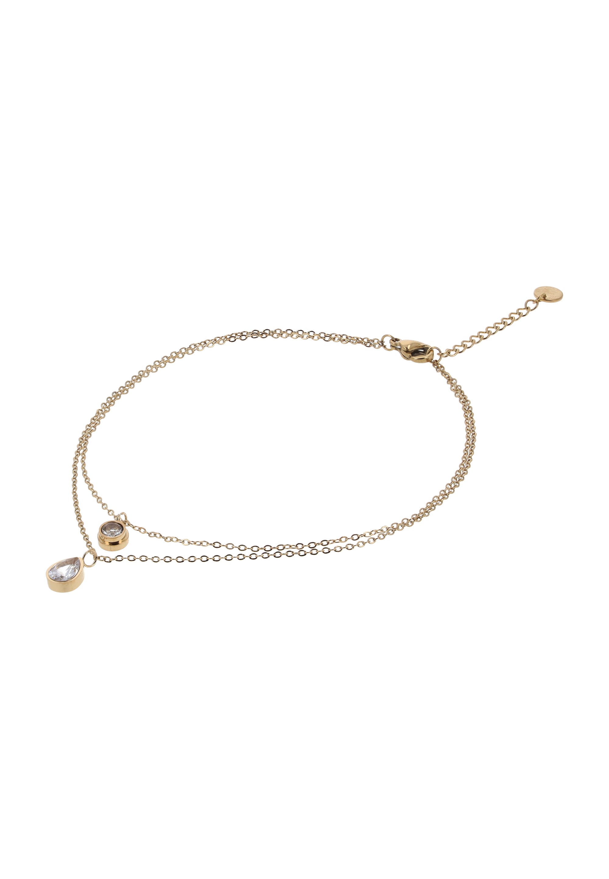 Dodaj blasku każdej stylizacji dzięki tej bransoletce na kostkę, wykonanej z delikatnego zawieszki i ozdobionej kryształami. Prosty design nadaje jej ponadczasowy charakter, a zapięcie typu lobster zapewnia wygodne i bezpieczne noszenie. Idealnie pasuje do eleganckich strojów. Część kolekcji biżuterii.